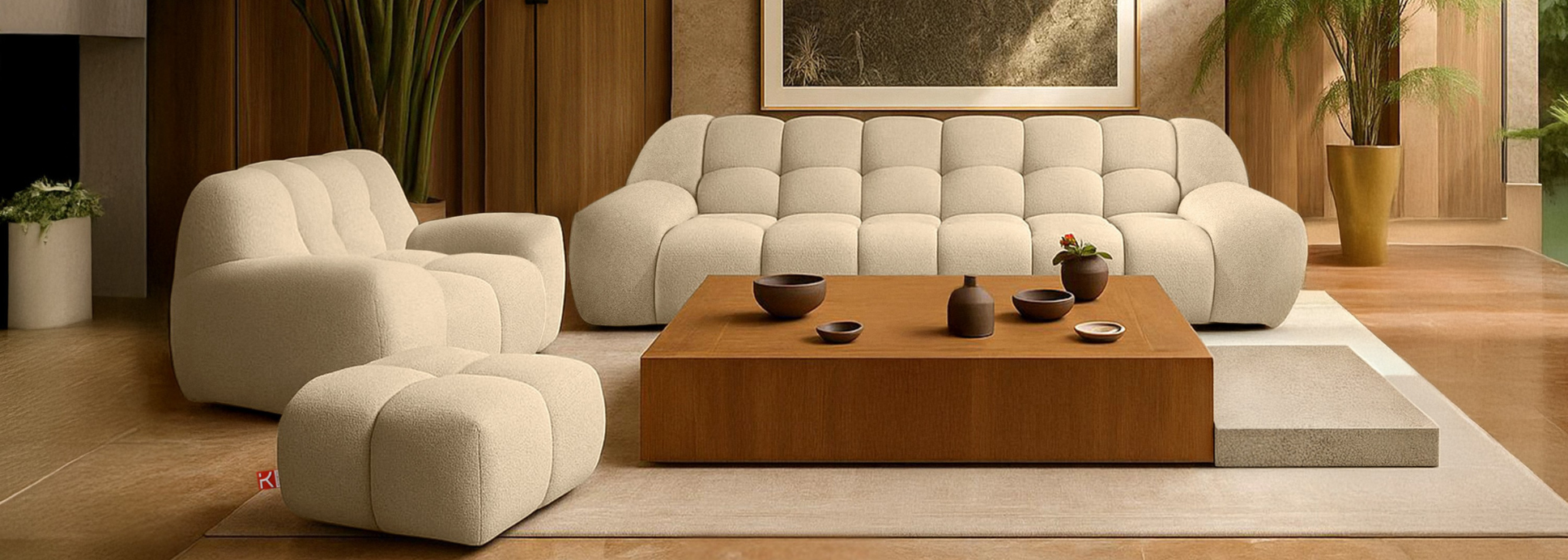Dobrým príkladom farebných akcentov, ktoré môže poskytnúť červený nábytok do obývačky, sú pohovky alebo rohové sedacie súpravy v tejto farbe. Môžu byť ústredným bodom priestoru a upútať pozornosť na pozadí bledých stien alebo neutrálneho nábytku. Krásnu červenú pohovku v interiéri často dopĺňajú štýlové vankúše, zvyčajne trochu tlmenej farby, alebo teplá deka, ktorá podporuje relaxáciu. Útulný interiér obývačky možno doplniť aj ďalšími drobnými doplnkami v červenej farbe - akcentom na obraze alebo obale na kvetináč.