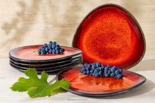 Ručne glazovaný červená jedálenský tanier