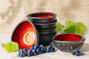 Ručne glazovaná keramická misa 6 ks červená
