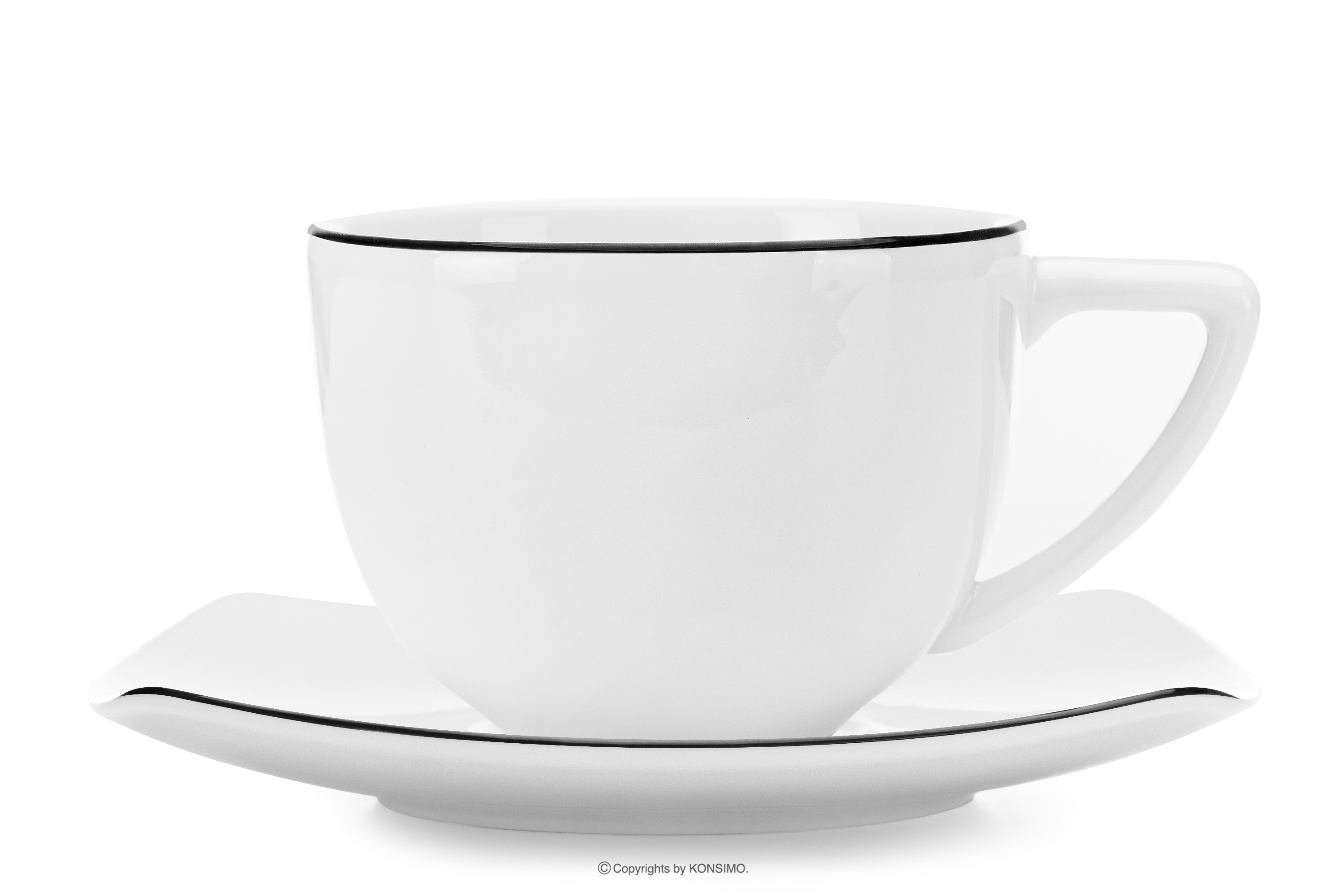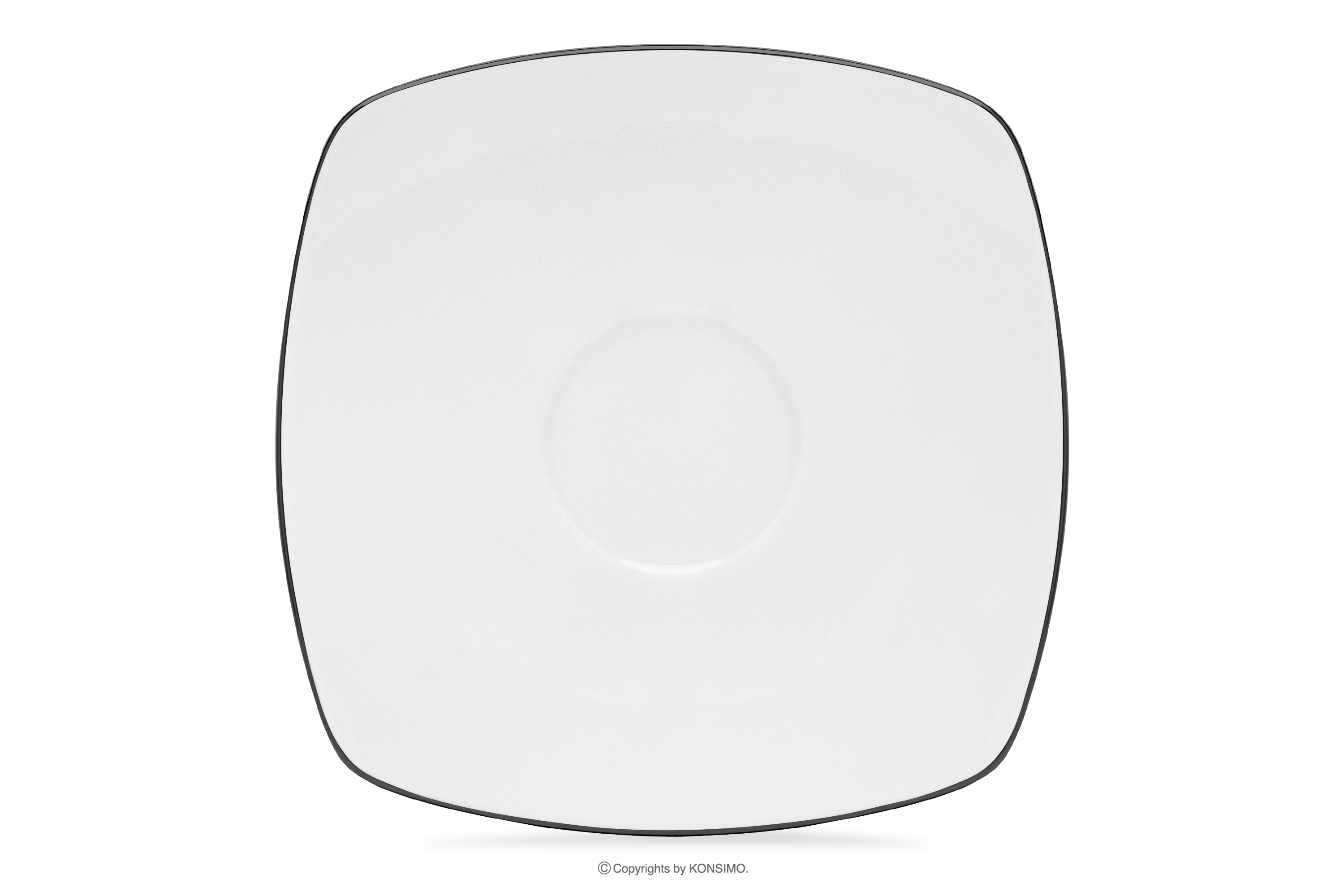 Podšálka na kávu s čiernym okrajom je výrobok, ktorý je skutočnou kvintesenciou štýlu a triedy. Jeho jedinečný dizajn založený na štvorcovom tvare dodáva každému kusu moderný nádych. Jemná línia na okraji dodáva podšálke jemný lesk, vďaka čomu nielen dokonale plní svoju funkciu, ale je aj dekoratívnym prvkom, ktorý priťahuje pozornosť. Jemný okraj, ktorý je charakteristickým znakom kolekcie CARLINA, dodáva celku ľahkosť a zároveň jedinečný šarm.