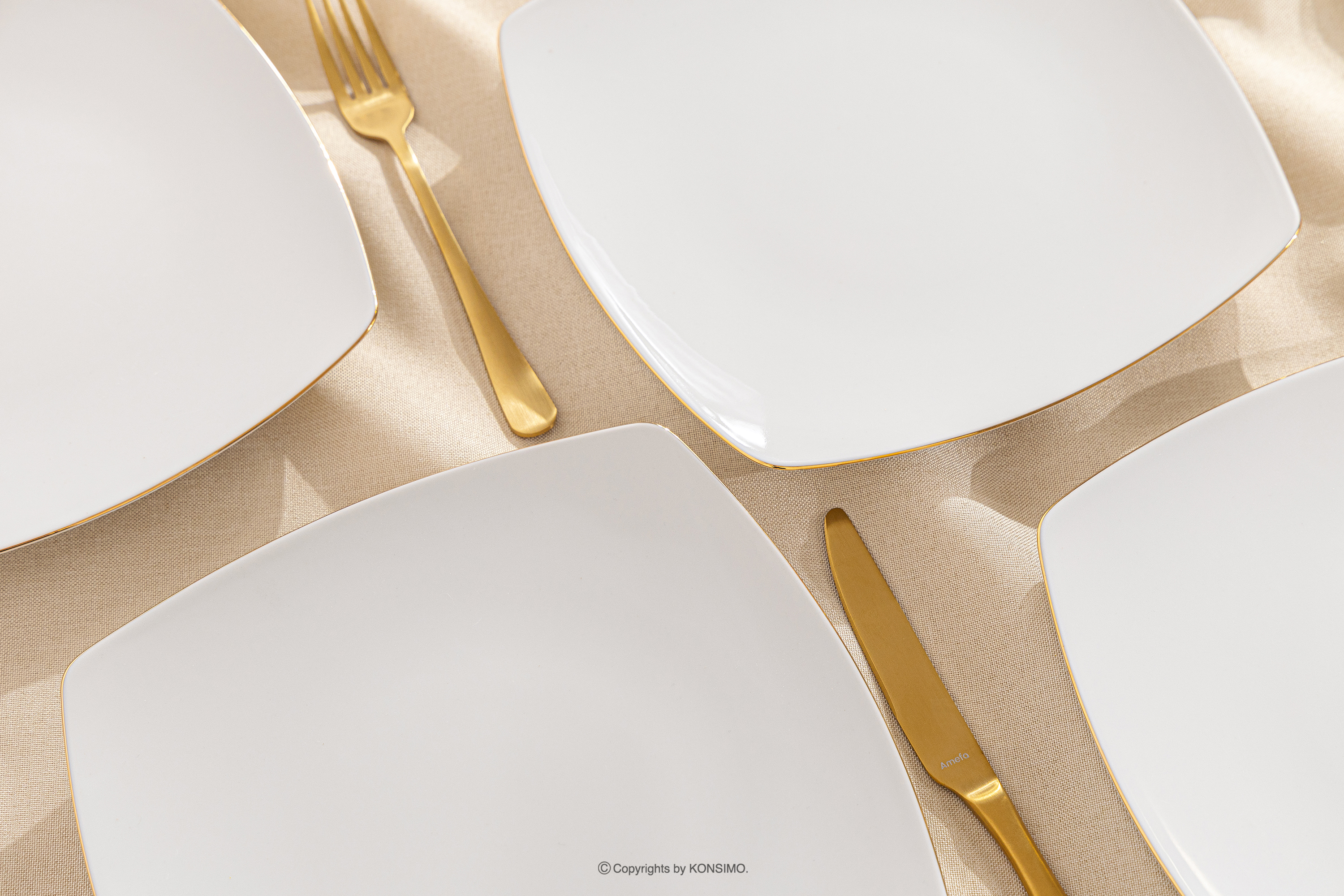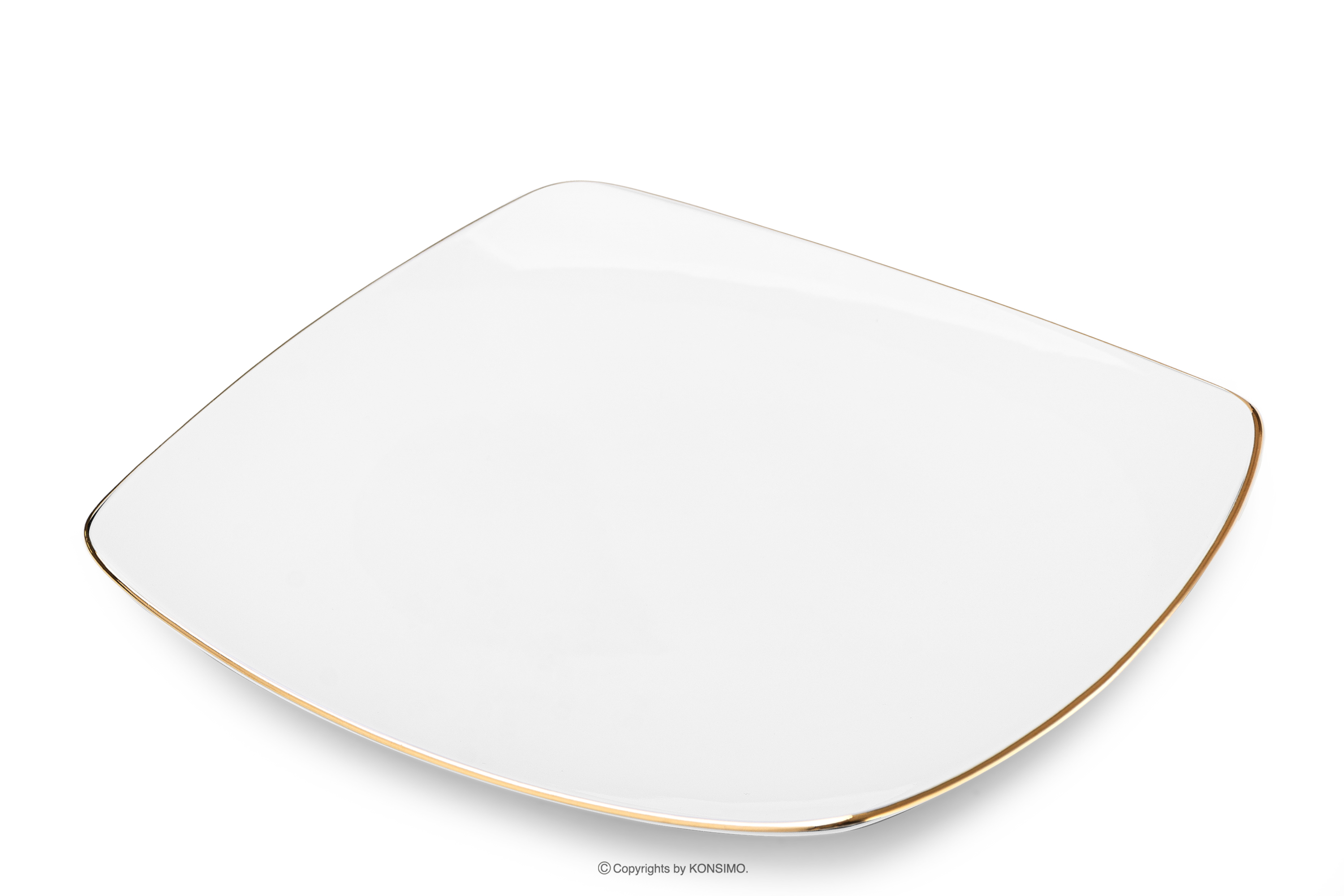Jedálenský tanier Gold Line je výrobok, ktorý je skutočnou kvintesenciou štýlu a triedy. Jeho jedinečný dizajn založený na štvorcovom tvare dodáva každému kusu moderný charakter. Jemná línia na okraji dodáva tanieru jemný lesk, vďaka čomu nielen dokonale plní svoju funkciu, ale je aj dekoratívnym prvkom, ktorý priťahuje pozornosť. Jemný okraj, ktorý je charakteristickým znakom kolekcie CARLINA, odľahčuje celok a zároveň mu dodáva jedinečný šarm.