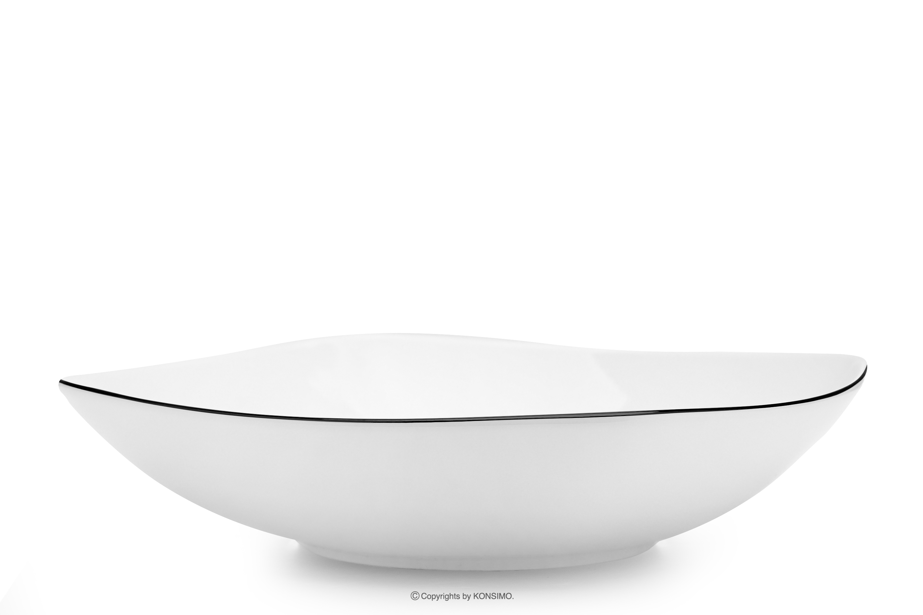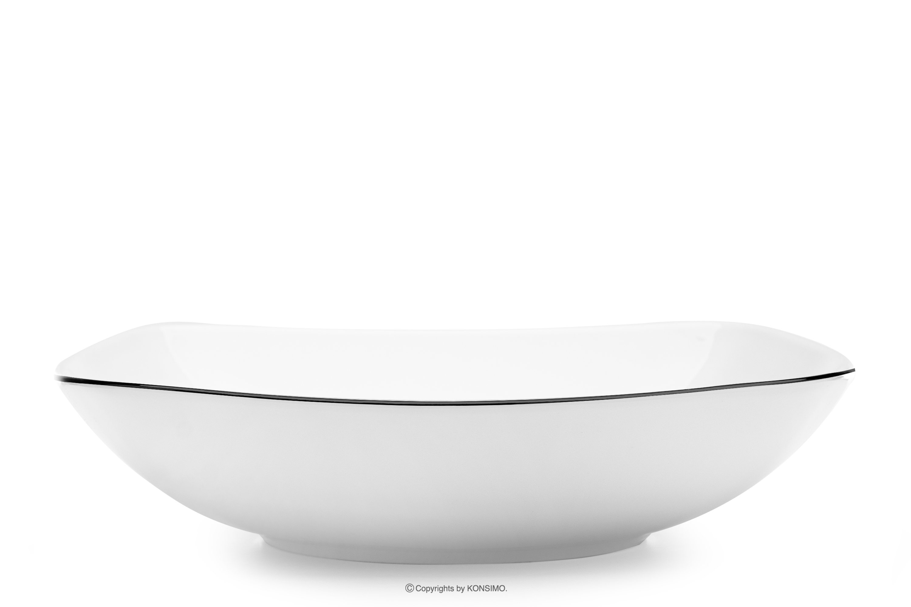 Elegantná štvorcová jedálenská súprava pre 6 osôb (12 dielov) s čiernym okrajom je výrobok, ktorý je skutočnou kvintesenciou štýlu a triedy. Jej jedinečný dizajn založený na štvorcovom tvare dodáva každému kusu moderný nádych. Jemná línia na okraji dodáva jemný lesk, vďaka čomu nielen dokonale plní svoju funkciu, ale je aj dekoratívnym prvkom, ktorý priťahuje pozornosť.