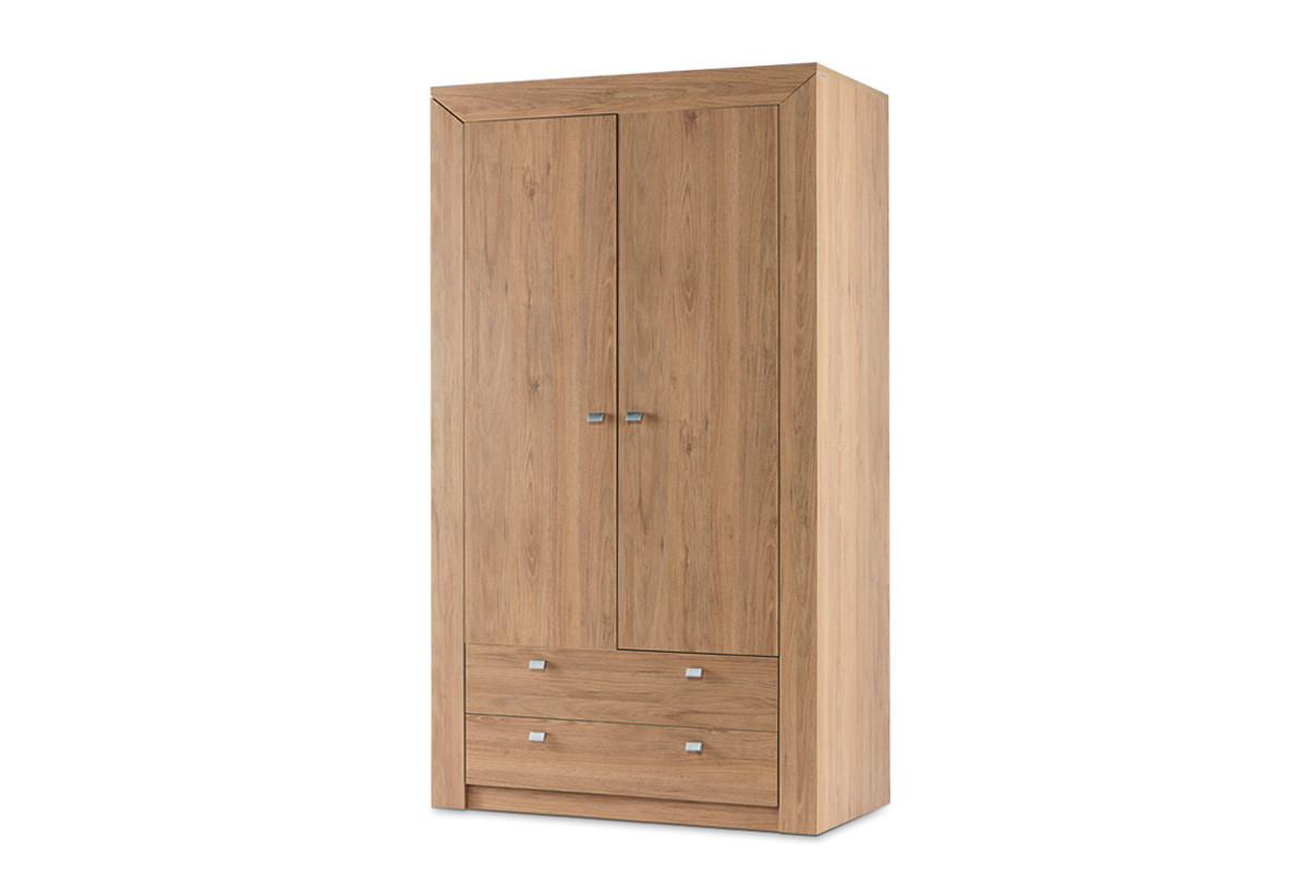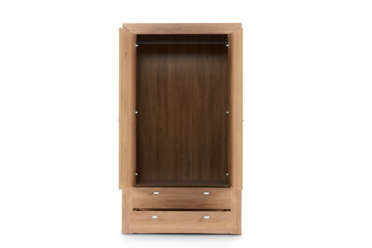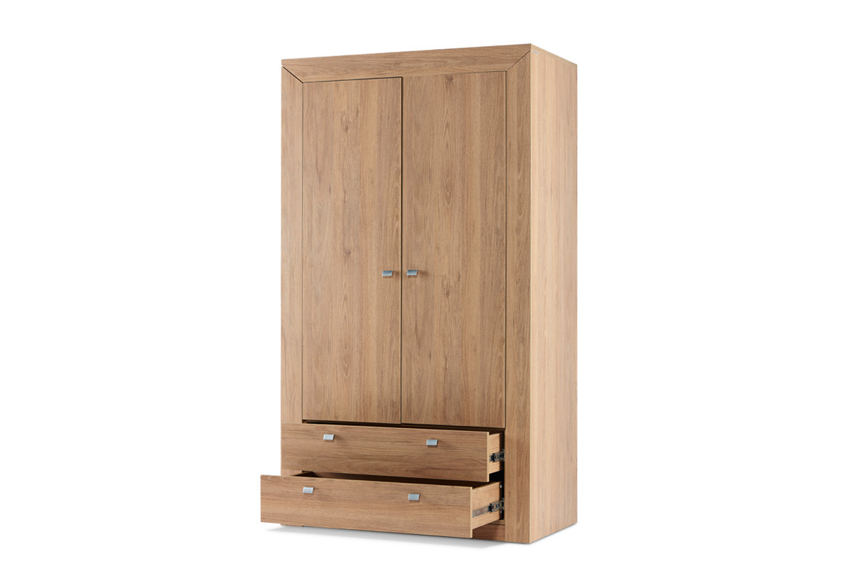 CALDO Jednoduchá šatníková skriňa so zásuvkami a šatníkovou tyčou 107 cm, prírodný dub