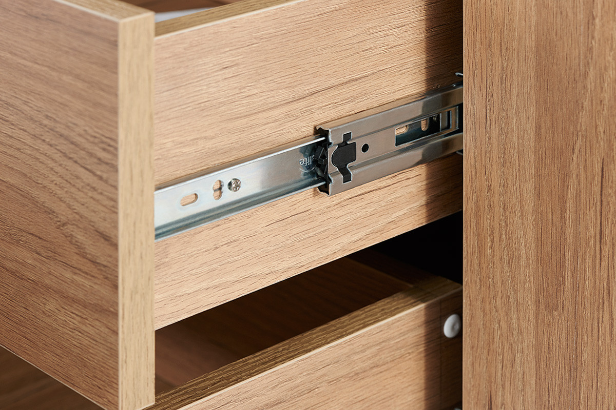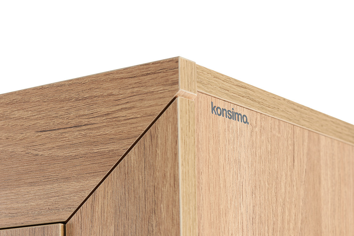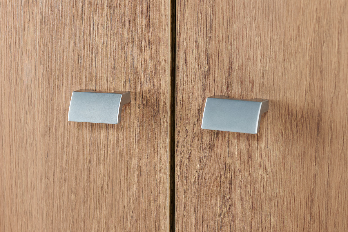 Nájdeme v nej veľa miesta - šatníková skriňa s tyčou na ramienka a dve hlboké, priestranné zásuvky. Dvere skriniek fungujú hladko a ticho vďaka hydraulickým pántom s tlmičom a Clip On vedením. Zásuvky sú naproti tomu vybavené tlmičom, možnosťou mäkkého dovierania a samozatváracou funkciou. Nivelačné nožičky umožňujú prispôsobiť výšku tohto moderného kusu nábytku potrebám interiéru.