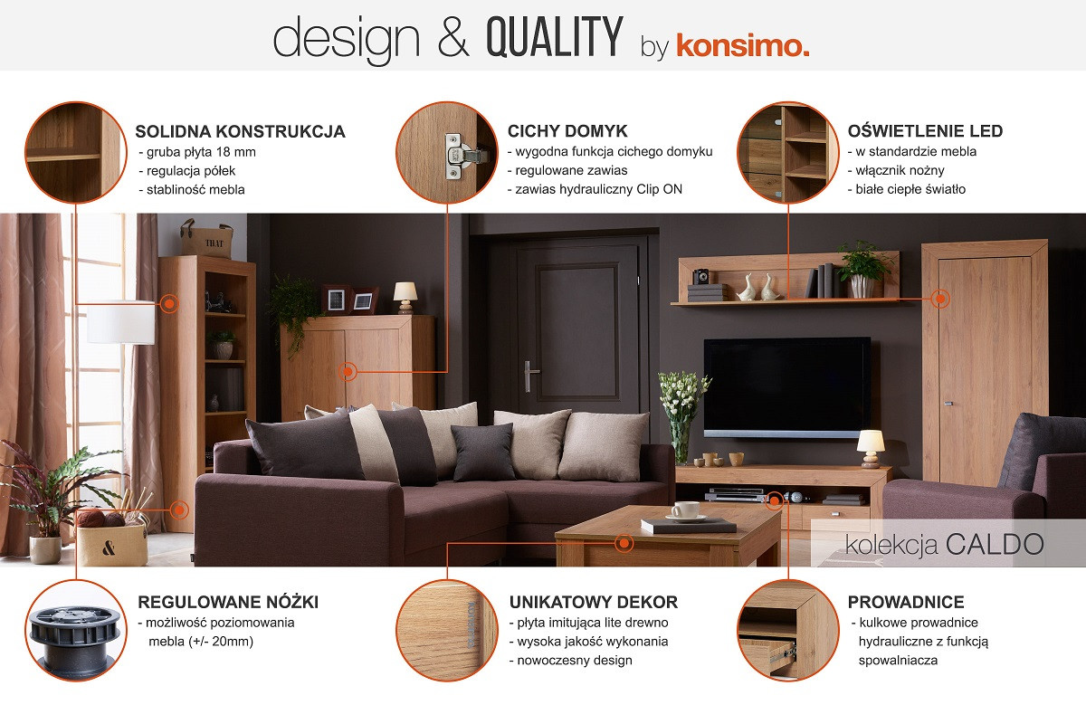Rastliny v kvetináčoch, knihy, ozdoby a dekorácie - to sú len niektoré prvky bytového zariadenia, ktoré si zaslúžia byť vystavené. Moderná závesná polica z kolekcie CALDO je vyrobená z veľmi pevnej dosky, vďaka ktorej úspešne udrží aj veľkú váhu. Laminát pripomínajúci drevo chráni povrch pred oderom a poškodením a taktiež uľahčuje udržiavanie závesnej police v dokonalej čistote.
