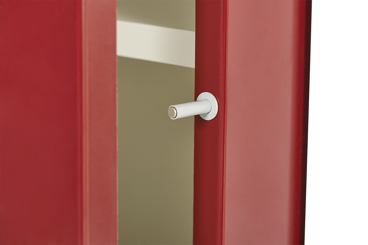 Moderná veľká závesná knižnica ALORE je praktický a funkčný kus nábytku, ktorý nájde svoje uplatnenie v každom modernistickom interiéri. Biele a červené lamino vo vysokom lesku, jednoduchá štruktúra a jedinečný dizajn podčiarkujú moderný štýl knižnice a dodávajú jej jedinečný charakter. Do priestranných políc sa zmestí množstvo oblečenia a ďalších vecí do domácnosti.