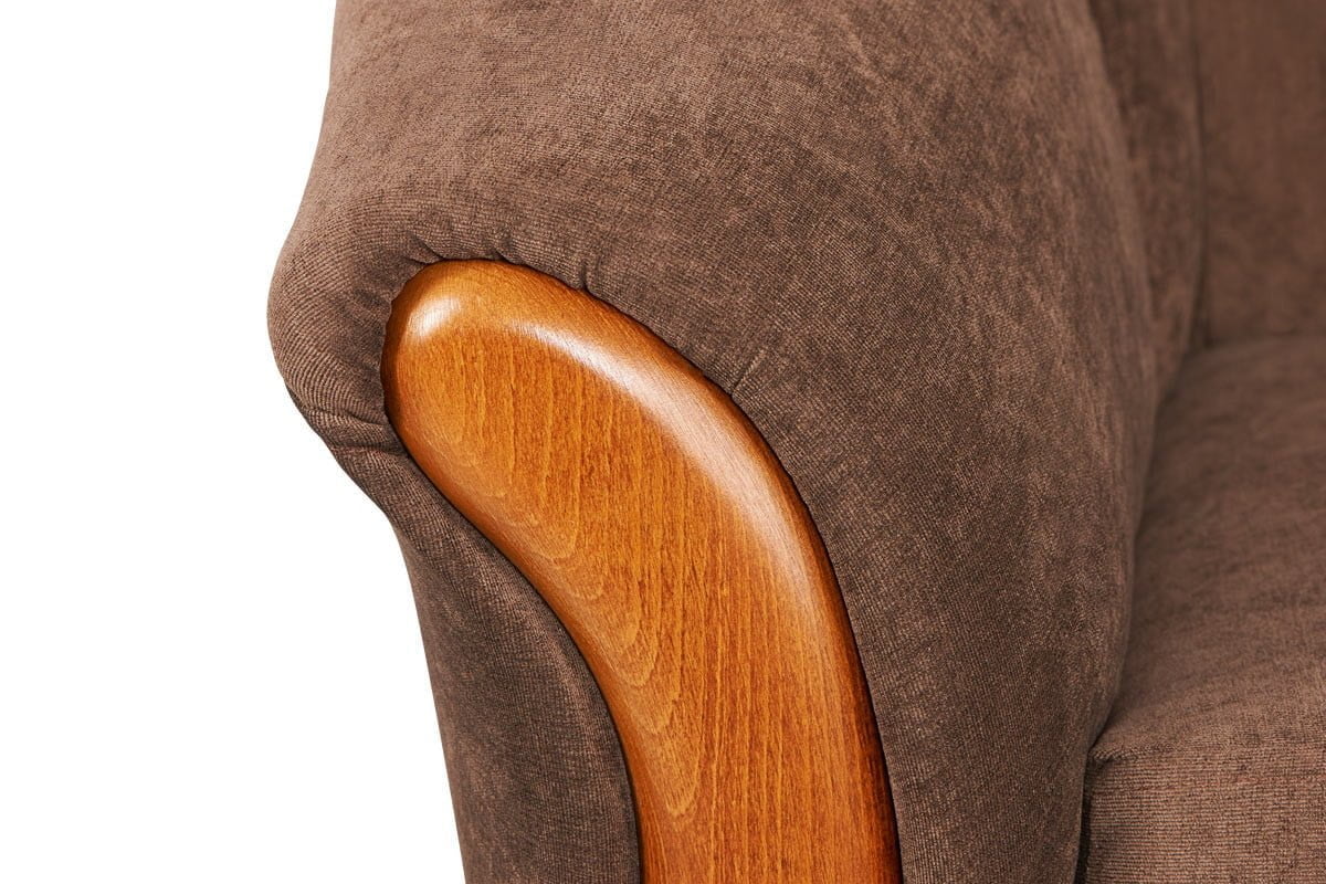 - Čalúnenie: kreslo má dekoratívne drevené vložky, vysoko kvalitné materiály