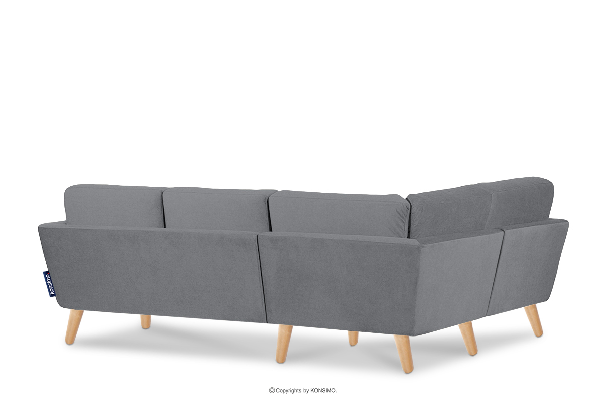 Rohová pohovka TAGIO v škandinávskom štýle má prirodzene sfarbené vysoké drevené nohy, ktoré pomáhajú udržiavať poriadok pod nábytkom. Vďaka sivému velúrovému opáleniu tento výrobok dokonale zapadá do trendov interiérového dizajnu. Materiál má veľmi vysokú odolnosť proti opotrebovaniu, takže roh vydrží dlhé roky.