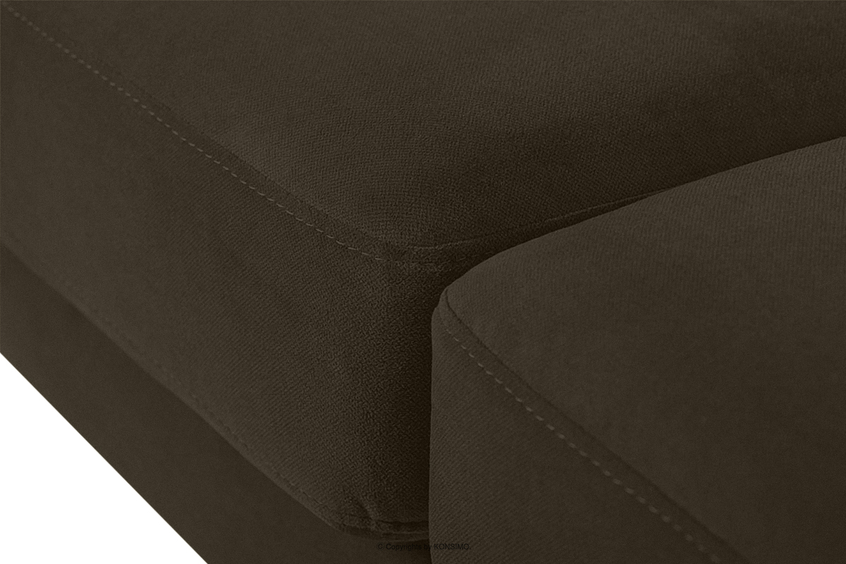 Rohová sedacia súprava TAGIO v hnedej farbe je nábytok pre ľudí, ktorí hľadajú výrobky najvyššej kvality. Je vyrobená z velúru, ktorý je odolný voči machu a svetlu a dlho si zachová svoj pôvodný vzhľad. Celkový rozmer výrobku je 220 cm x 80 cm x 181 cm. Sedačka je vybavená vlnitými pružinami, ktoré sa vyznačujú vysokou odolnosťou proti pokrčeniu. Výrobky s týmito pružinami sa nedeformujú. Okrem toho sedák a operadlo obsahujú vysoko pružnú penu HR 30, ktorá má hladkú štruktúru. Je pružná, odolná proti roztiahnutiu, preťaženiu a stlačeniu a má vysoko priedušný povrch a vnútro. Ide o penu, ktorá sa používa pri výrobe exkluzívneho nábytku. Nohy obývačky sú vyrobené z masívneho dreva, sú potiahnuté bezfarebným lakom a merajú 18 cm.
