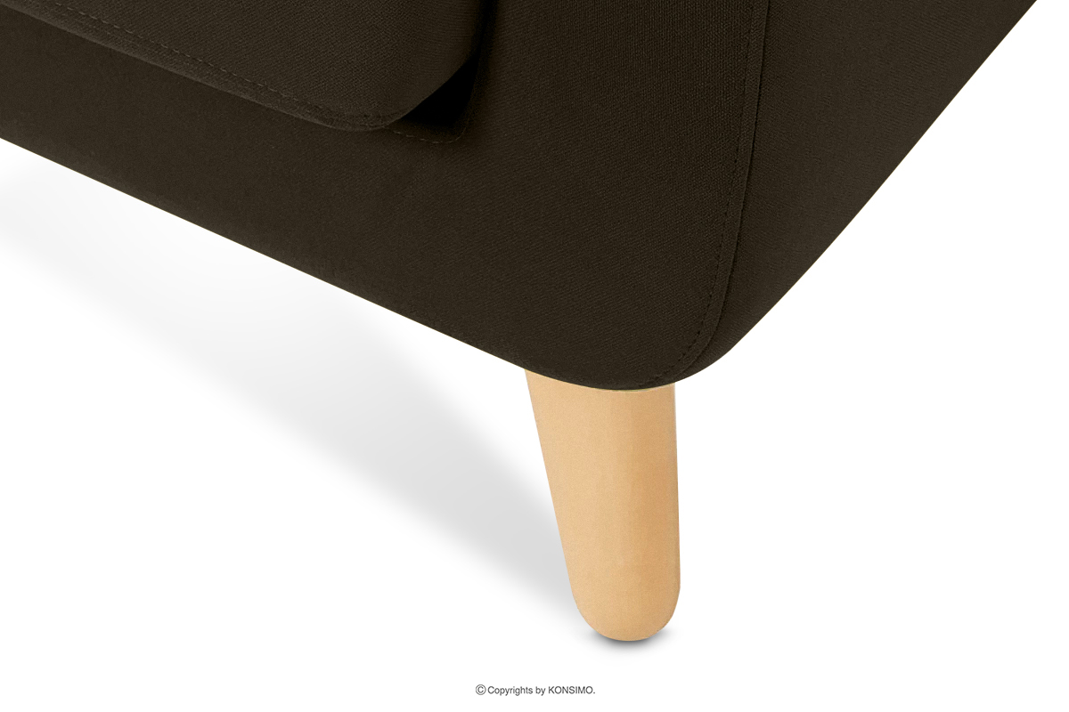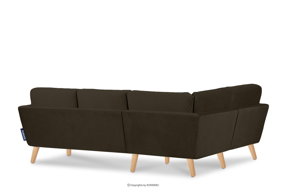 Hnedá škandinávska ľavá rohová pohovka z kolekcie TAGIO je produkt vyrobený z vysokokvalitných materiálov. Dizajn je inšpirovaný severnou Európou. Ďalším atribútom tohto nábytku je poťah vankúša, ktorý obsahuje esteticky skrytý tunel na zips. Rohová pohovka TAGIO je čalúnená velúrovou látkou, ktorá je neuveriteľne jemná na dotyk a zostáva odolná voči oderu a odlupovaniu.