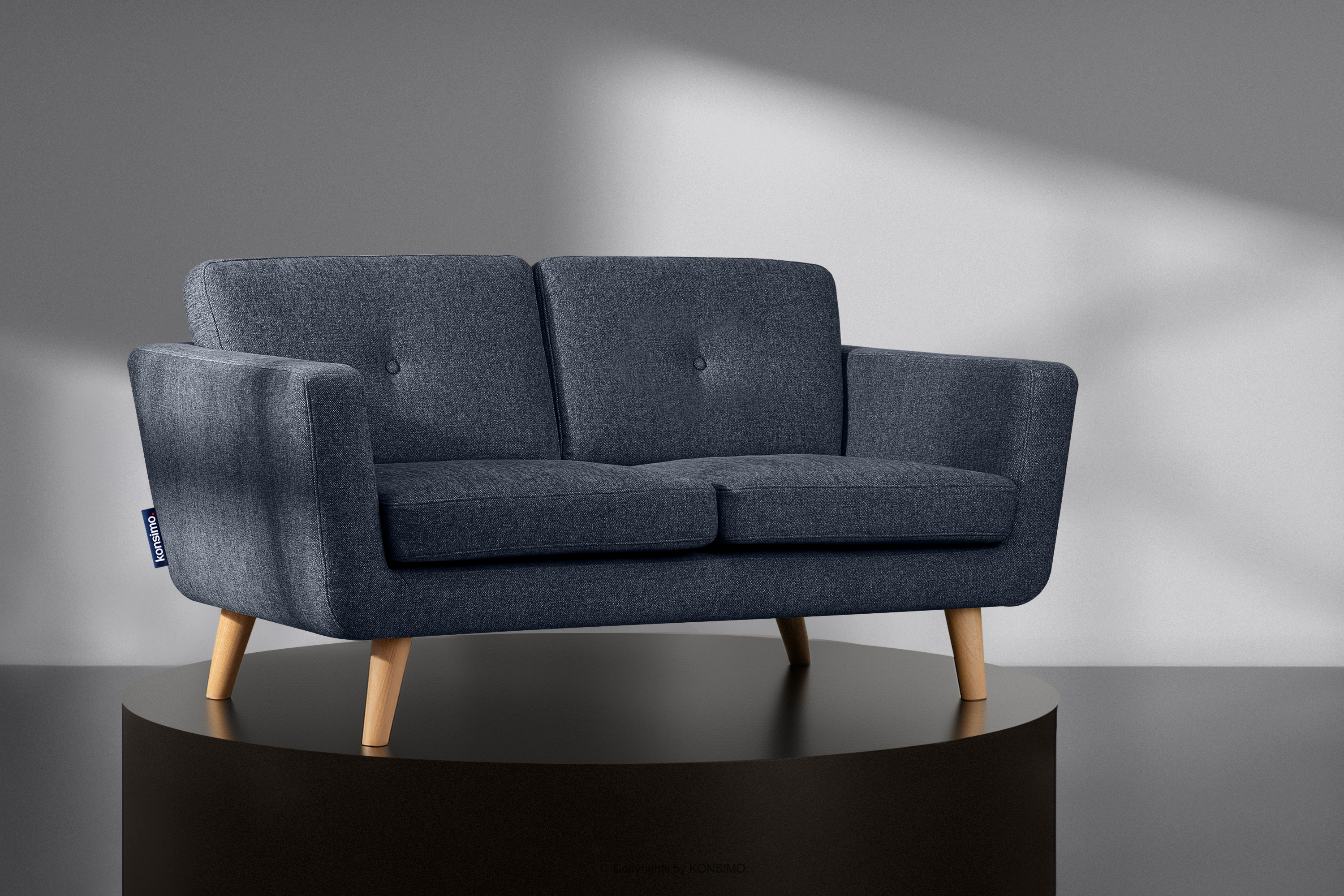 TAGIO II Objav celú kolekciu 2-miestna škandinávska pohovka s prešívanou pletenou látkou tmavomodrá- farba námornícka modrá