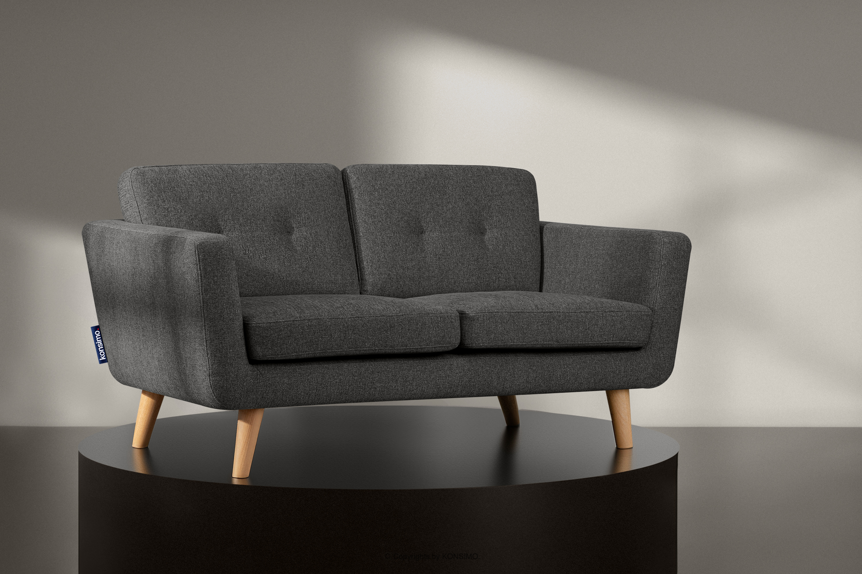 Škandinávska dvojmiestna pohovka s prešívaním v tkanej grafitovej látke je výrobok vyrobený z vysokokvalitných materiálov. Dizajn je inšpirovaný severoeurópskym regiónom. Ďalším atribútom tohto kusu nábytku je poťah vankúša, ktorý obsahuje esteticky skrytý tunel na zips. Pohovka TAGIO je čalúnená tkanou látkou, ktorá je neuveriteľne príjemná na dotyk a zostáva odolná voči oderu a odlupovaniu.