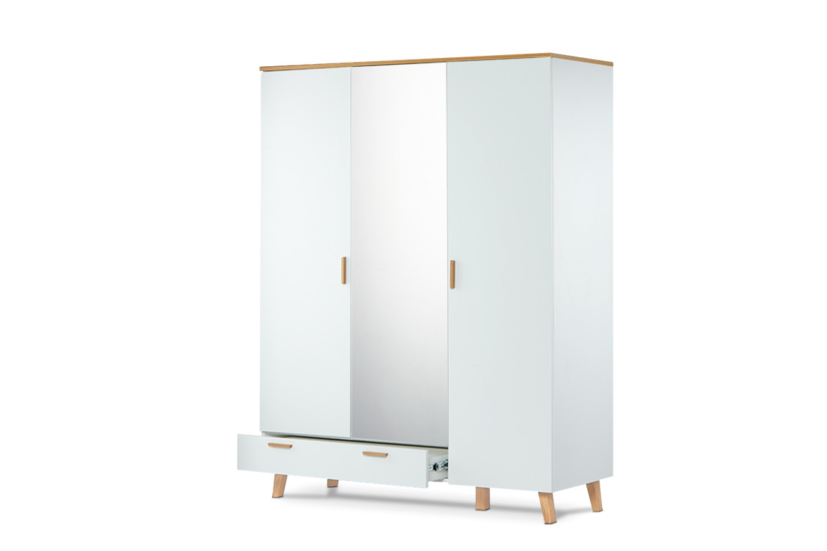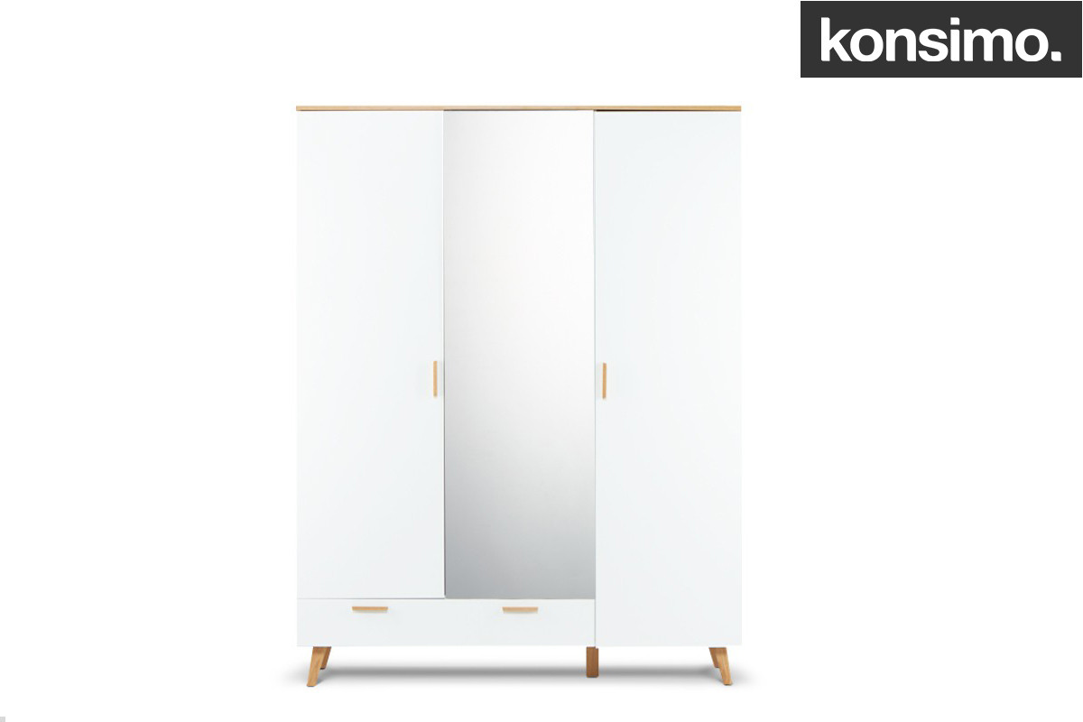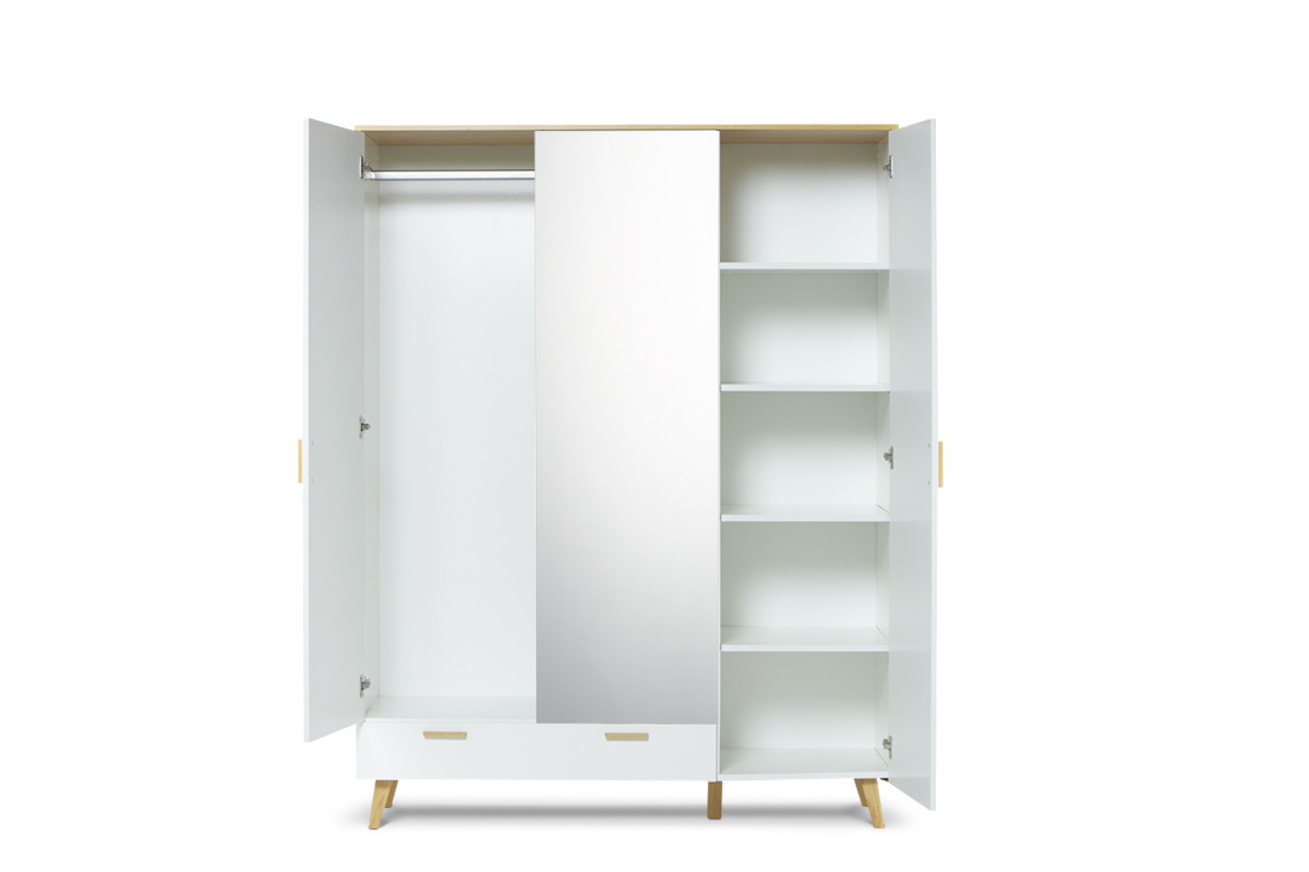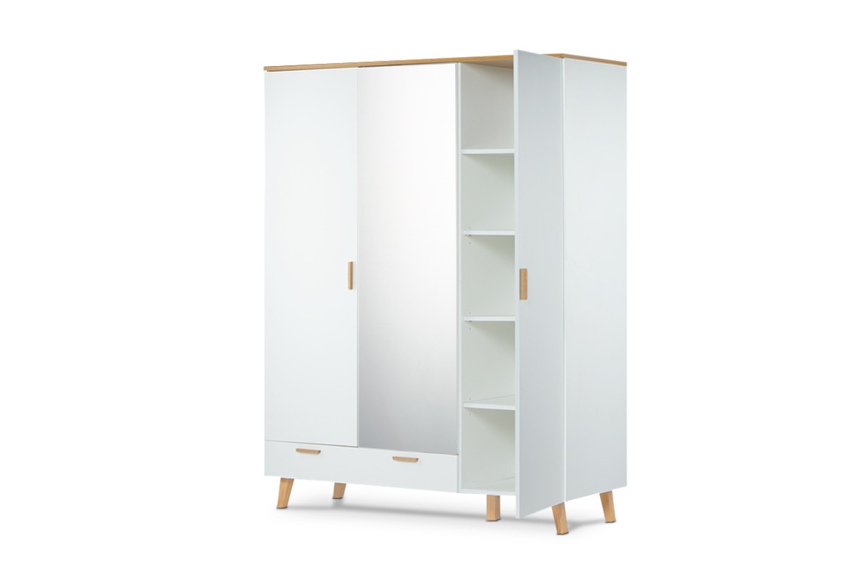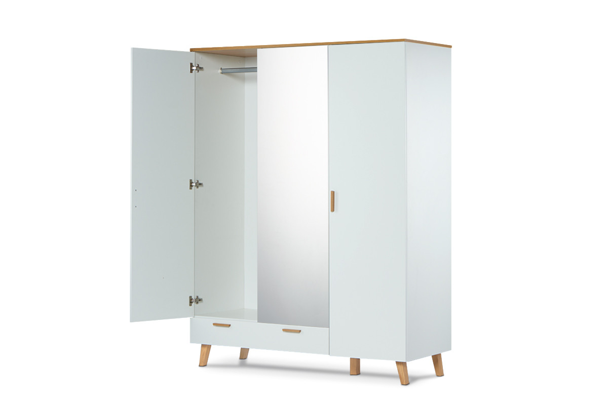 produktu Biela šatníková skriňa v škandinávskom štýle so zrkadlom