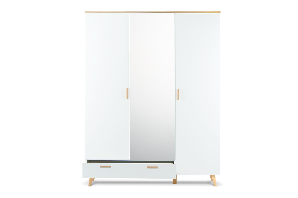 FRISK Objav celú kolekciu Biela šatníková skriňa v škandinávskom štýle so zrkadlom- farba bílá/přírodní dub