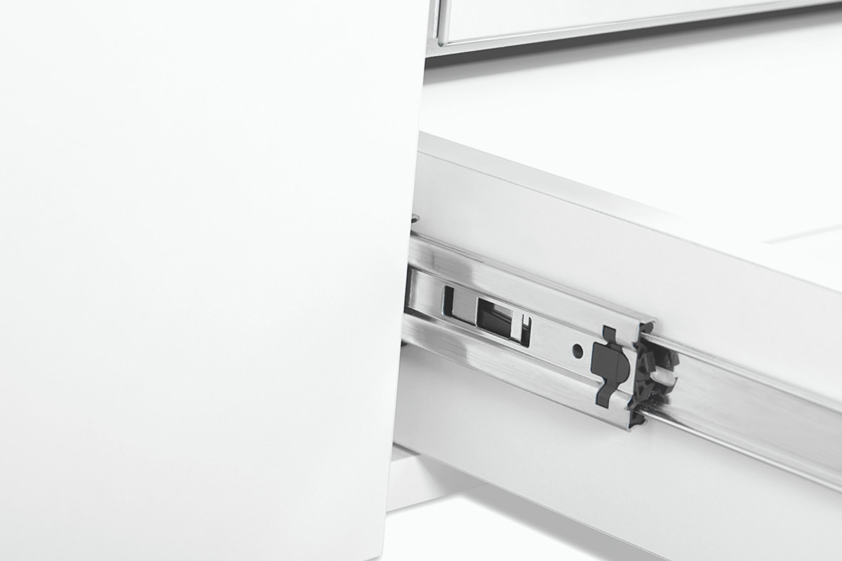 - Vodidlá: guľové závesy s plným výsuvom