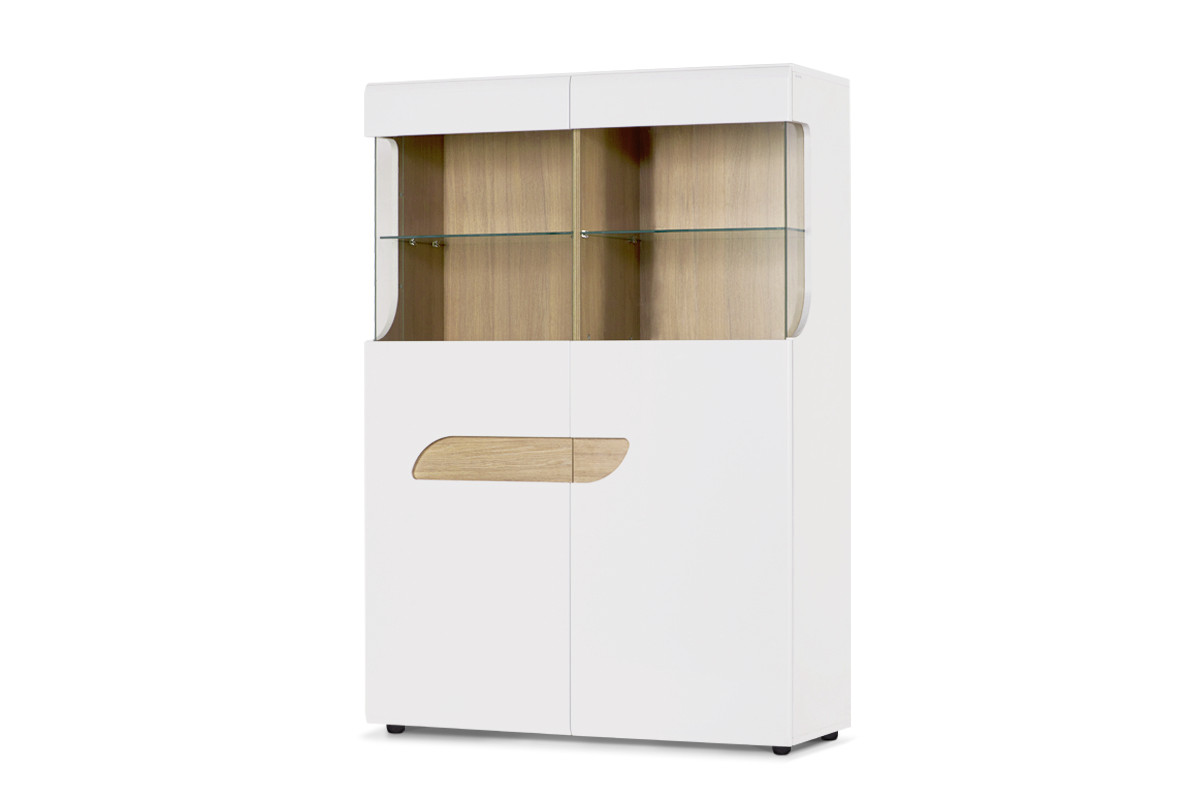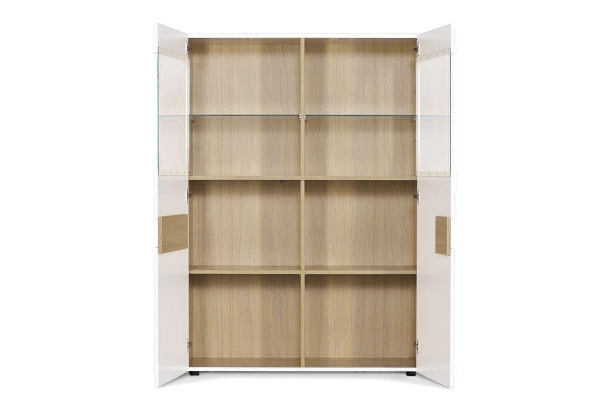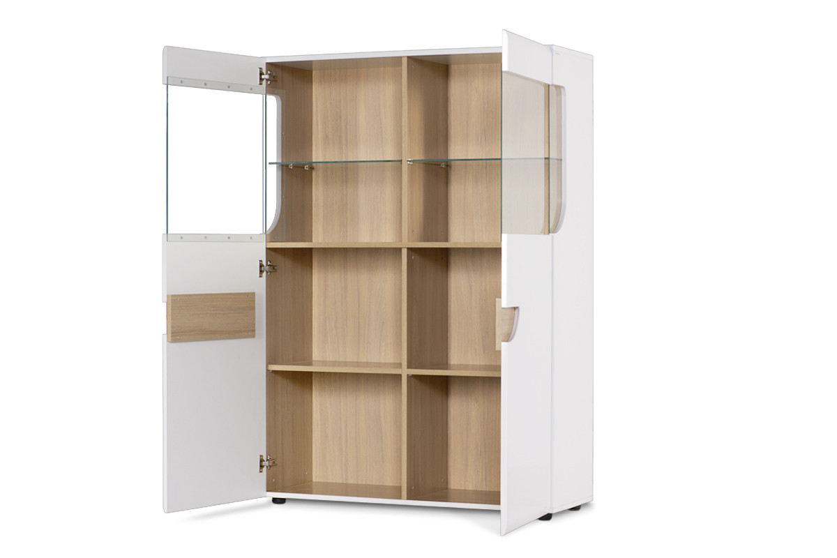 AVERO Objav celú kolekciu Dvojitá vitrína v škandinávskom štýle biela- farba matná bílá/lesklá bílá/dub