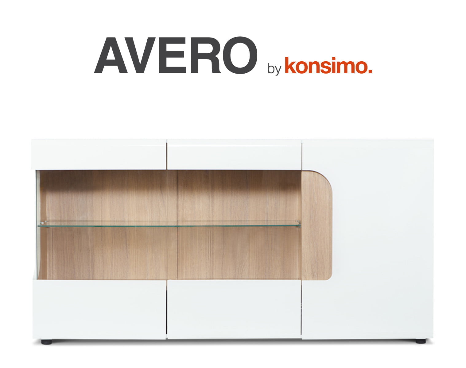 Krásna a moderná komoda z kolekcie AVERO je funkčným nábytkom, ktorý sa bude dobre vynímať v obývacej izbe alebo obývacej izbe a izbe pre hostí. Ozdobné frézované prelisy a presklené dvierka zdôrazňujú moderný štýl a módny charakter tejto komody. Veľká kapacita skríň umožňuje uložiť mnoho vecí a vďaka preskleným dvierkam môžete vystaviť tie najatraktívnejšie prvky vybavenia.