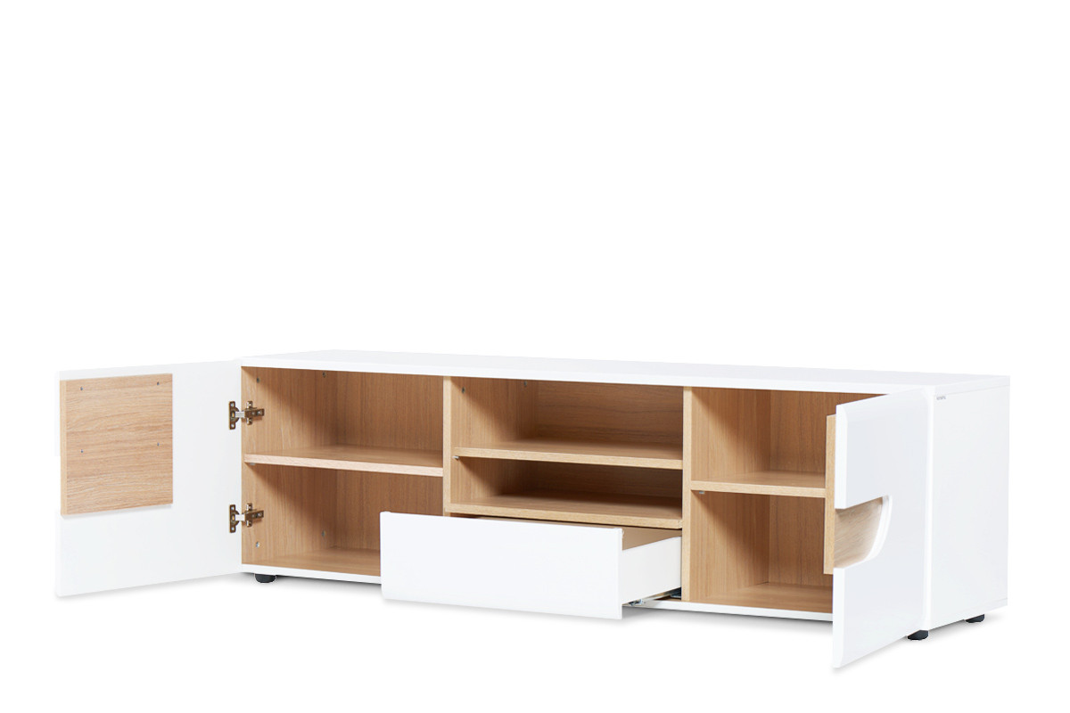 AVERO Objav celú kolekciu TV skrinka v škandinávskom štýle 165 cm biela- farba matná bílá/lesklá bílá/dub