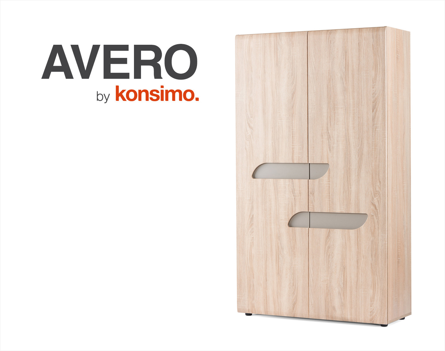 AVERO Objav celú kolekciu Šatníková skriňa s policami v škandinávskom štýle, šedý dub- farba dub/greige