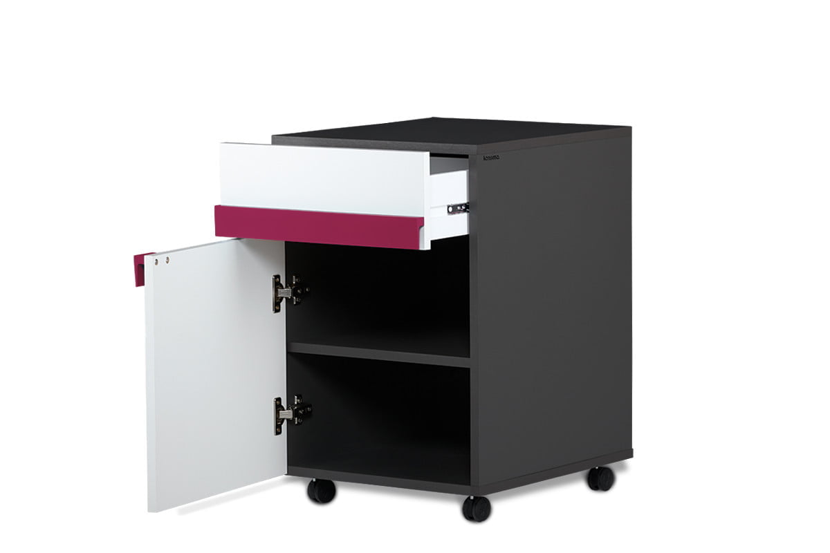 Dobre organizovaný priestor napomáha koncentrácii a podporuje kreativitu. Návrhári funkčnej zostavy nábytku pre mládež SHIBU to vedia. Táto kompozícia zahŕňa grafitový písací stôl pre študenta s maximálne zjednodušenou formou a pohodlnou skrinkou na kolieskach. V prípade potreby je možné nádobu pre mládež jednoducho vytiahnuť a presunúť na iné miesto. Hlboká zásuvka pojme písacie potreby, náradie a ďalšie doplnky, praktická skrinka s policou - učebnice, knihy alebo napríklad rôzne dokumenty.