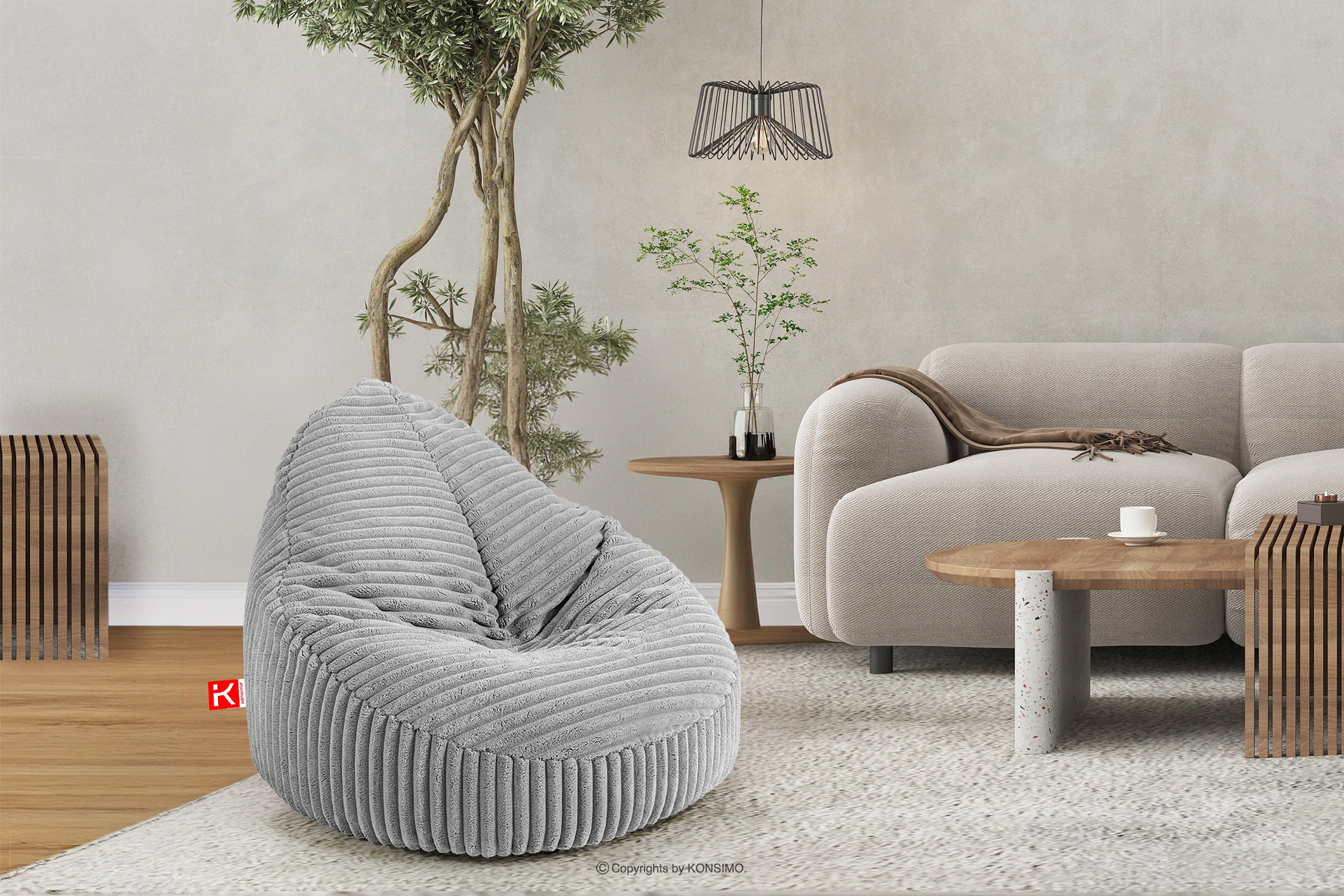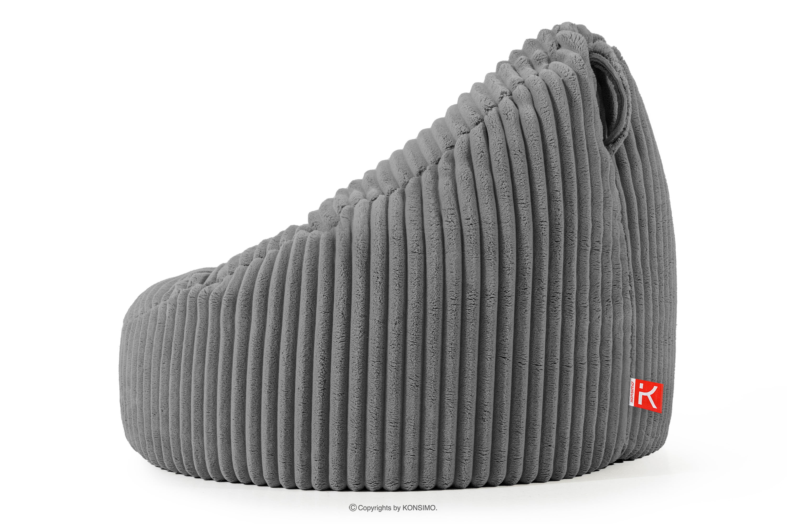 Vreckový puf z manšestrovej tkaniny tmavosivej farby sa určite stane obľúbeným miestom na odpočinok v každej domácnosti. Predovšetkým však poskytuje jedinečný spôsob relaxácie. Je vyrobený z na dotyk príjemnej manšestrovej tkaniny, ktorá sa vyznačuje vysokou odolnosťou, vďaka ktorej vydrží dlhé roky. Jeho ergonomický tvar sa prispôsobí telu používateľa, čo umožňuje pohodlnú polohu.
