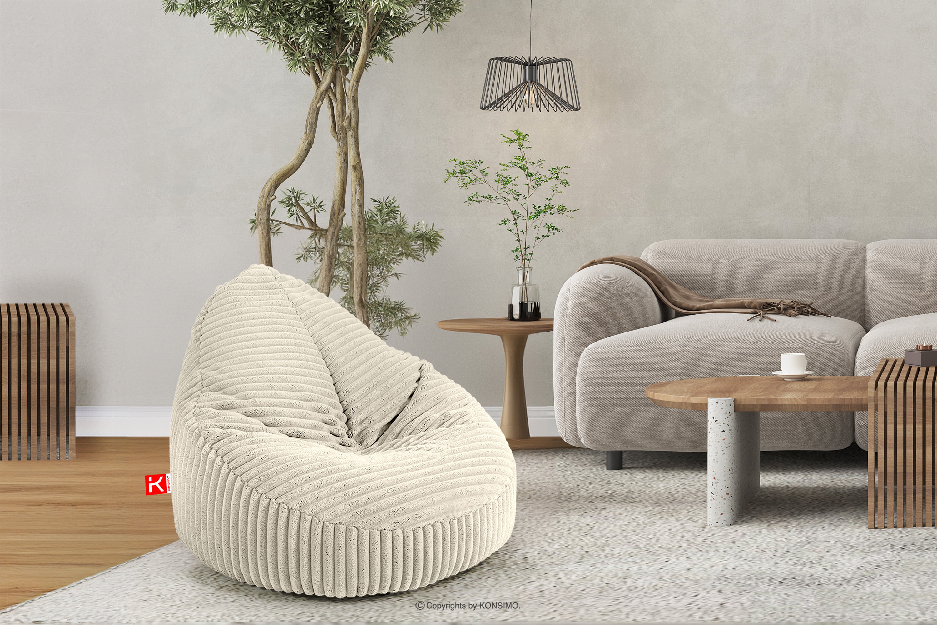 COSMO II Objav celú kolekciu Sedací vak puf z manšestrovej tkaniny krémovej farby- farba krémová