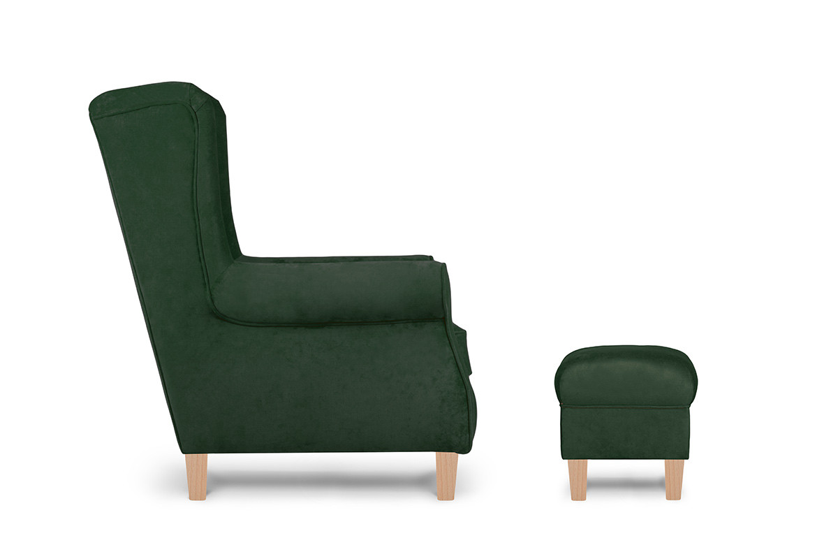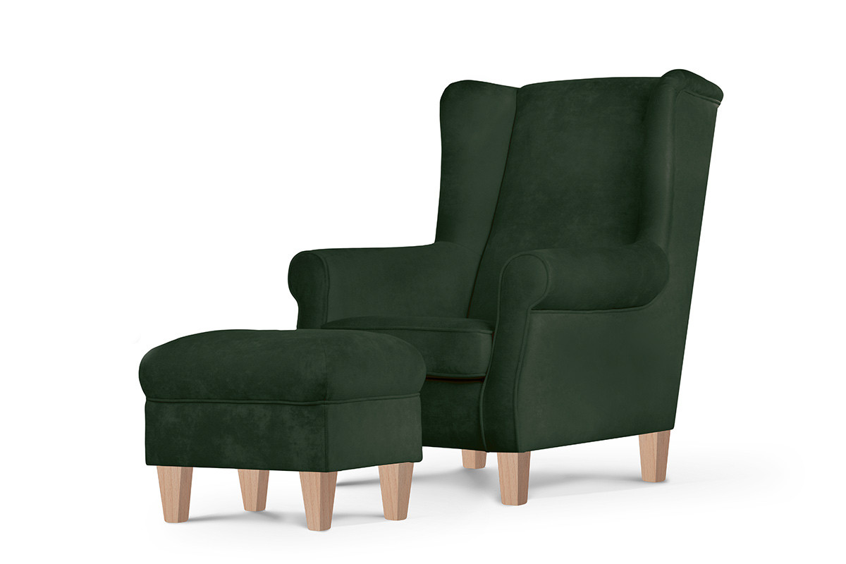 MILES Objav celú kolekciu Fľaškovo zelená velúrová podnožka s drevenými nôžkami- farba zelená/buk