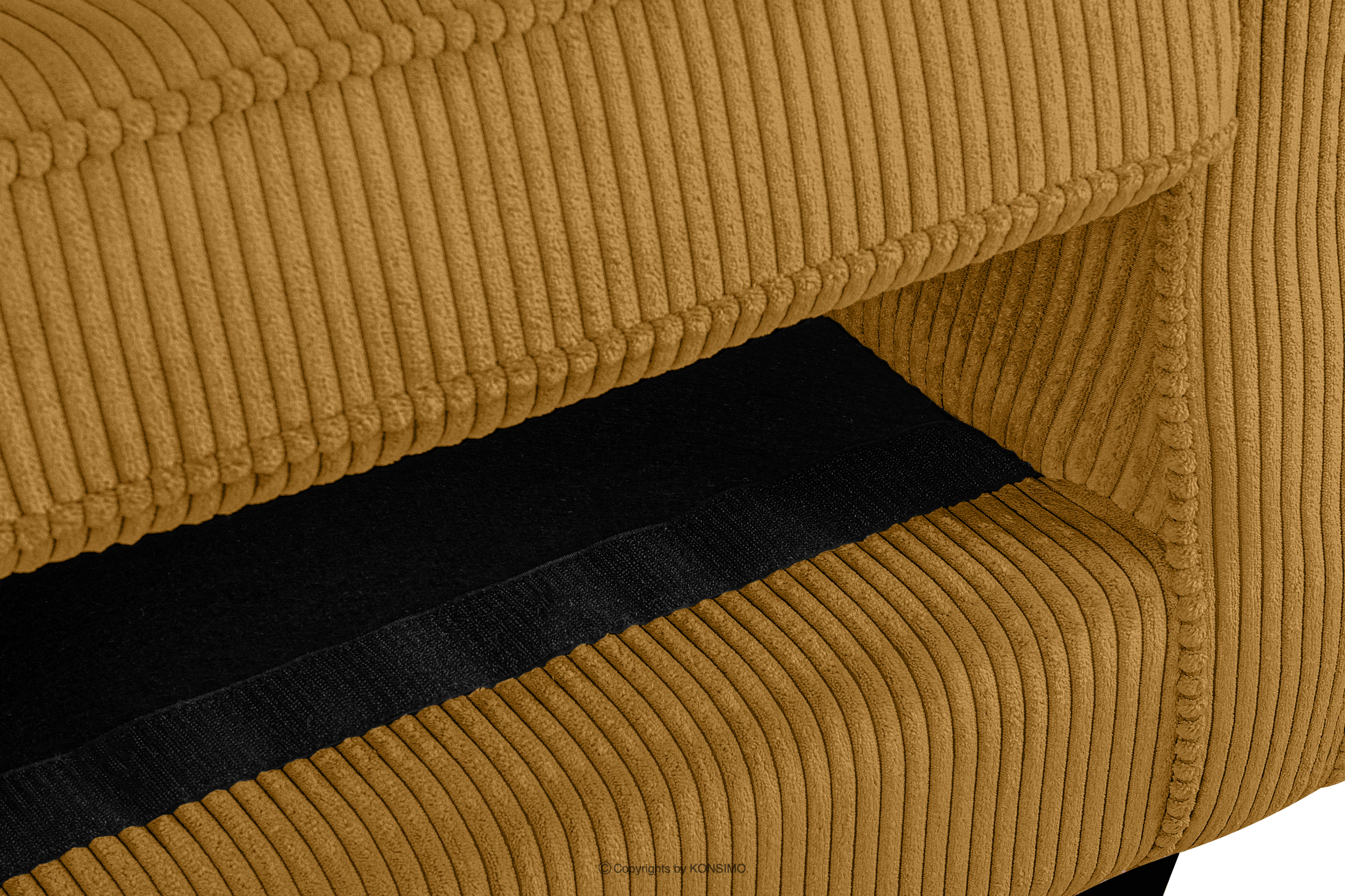 Manšestrové kreslo uszak na drevených nohách horčicovo-čiernej farby je skutočným skvostom vo svete interiérových trendov, ktorý v sebe spája vynikajúce pohodlie a jedinečný dizajn v škandinávskom štýle. Je vyrobené z odolnej tkanej látky, ktorá je vysoko odolná voči žmolkovaniu a škvrnitosti. Dokonale sa hodí do škandinávskych a minimalistických interiérov, ktorým dodáva útulný a originálny charakter.