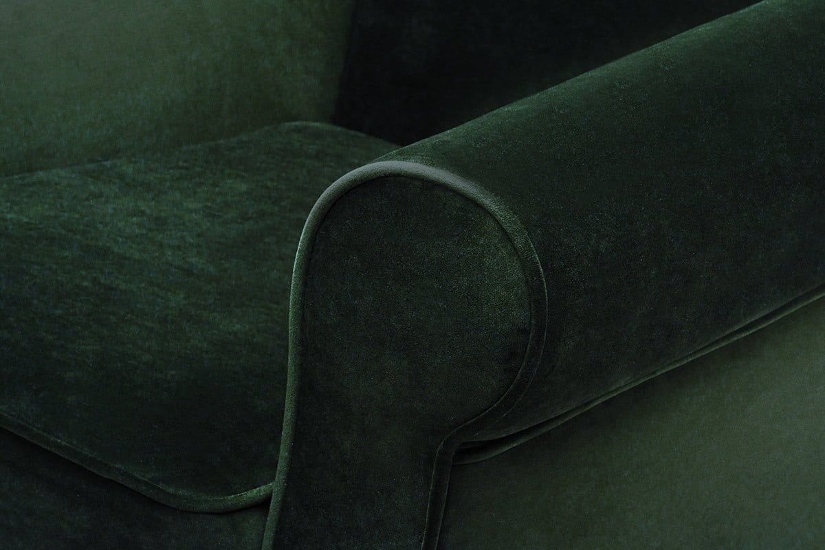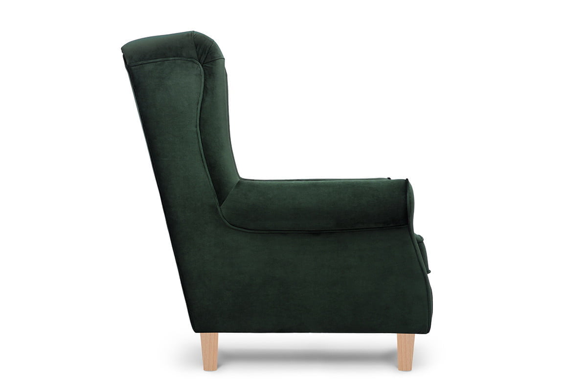 MILES Objav celú kolekciu Fľaškovo zelené velúrové kreslo ušiak s drevenými nôžkami- farba zelená/buk