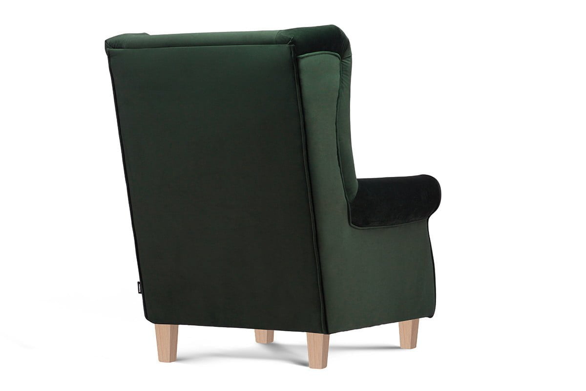 produktu Fľaškovo zelené velúrové kreslo ušiak s drevenými nôžkami