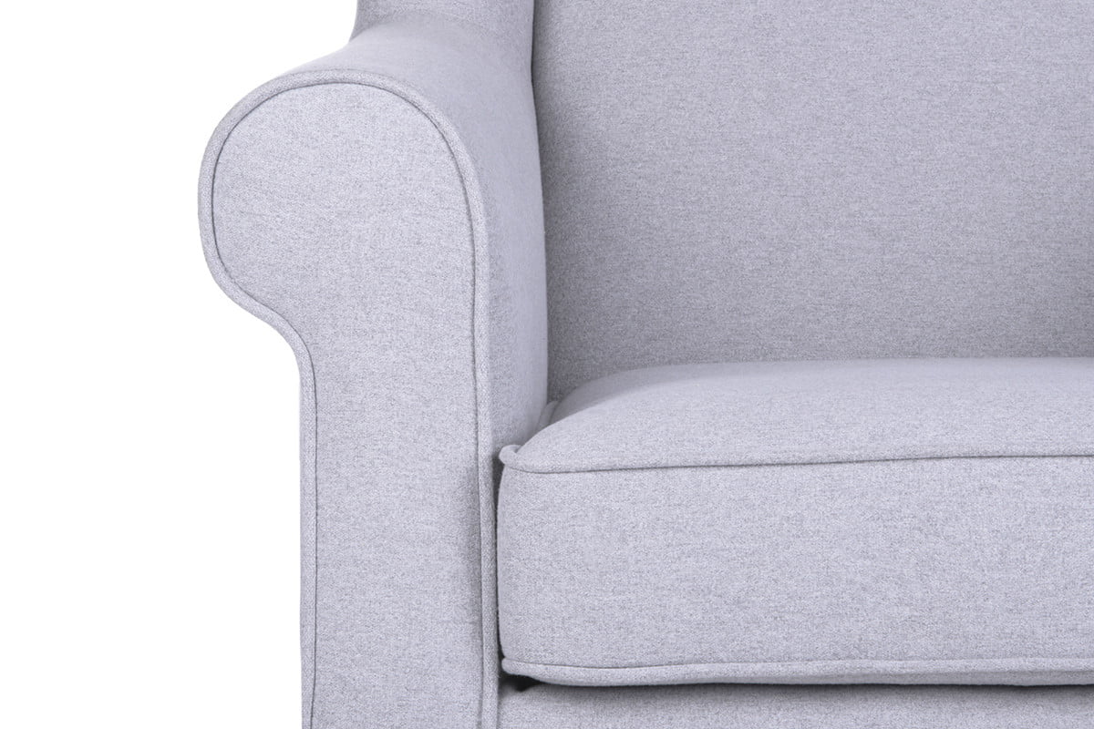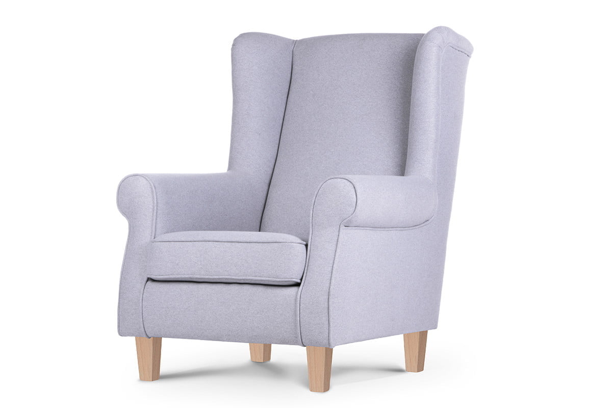 MILES Objav celú kolekciu Šedé kreslo ušiak s drevenými nôžkami- farba světle šedá/buk