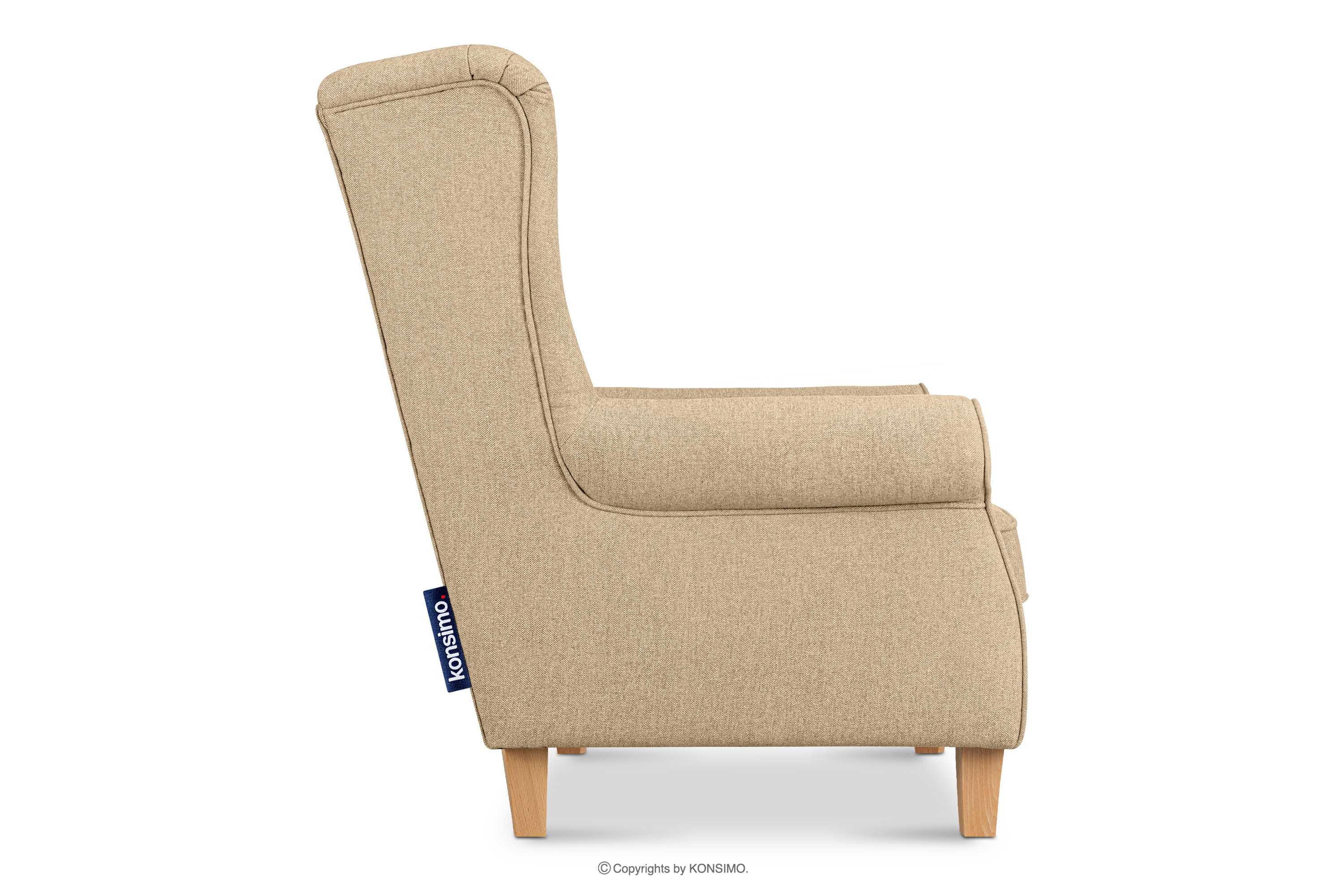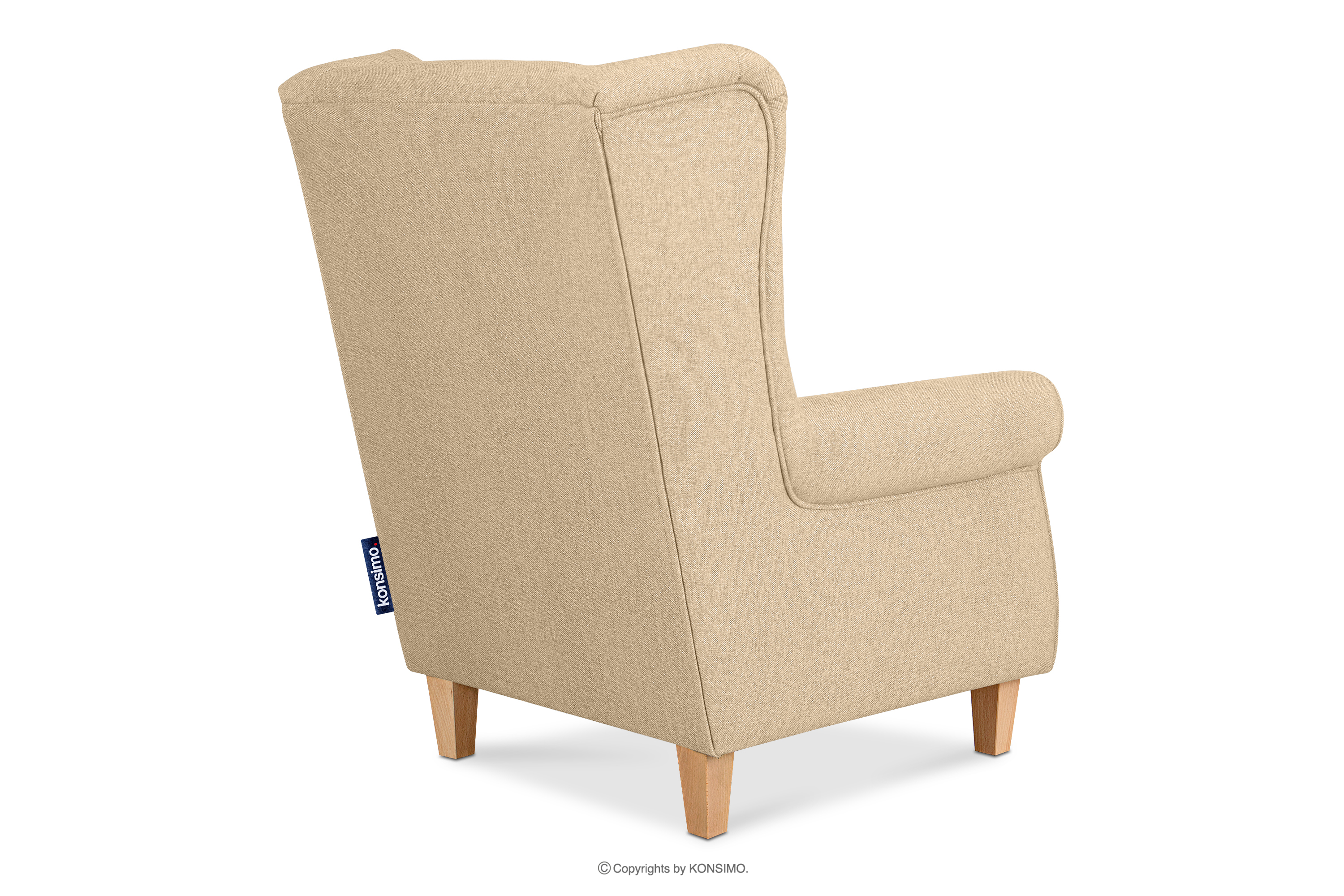 produktu Kreslo ušiak v tkanej textílii krémová/bukové