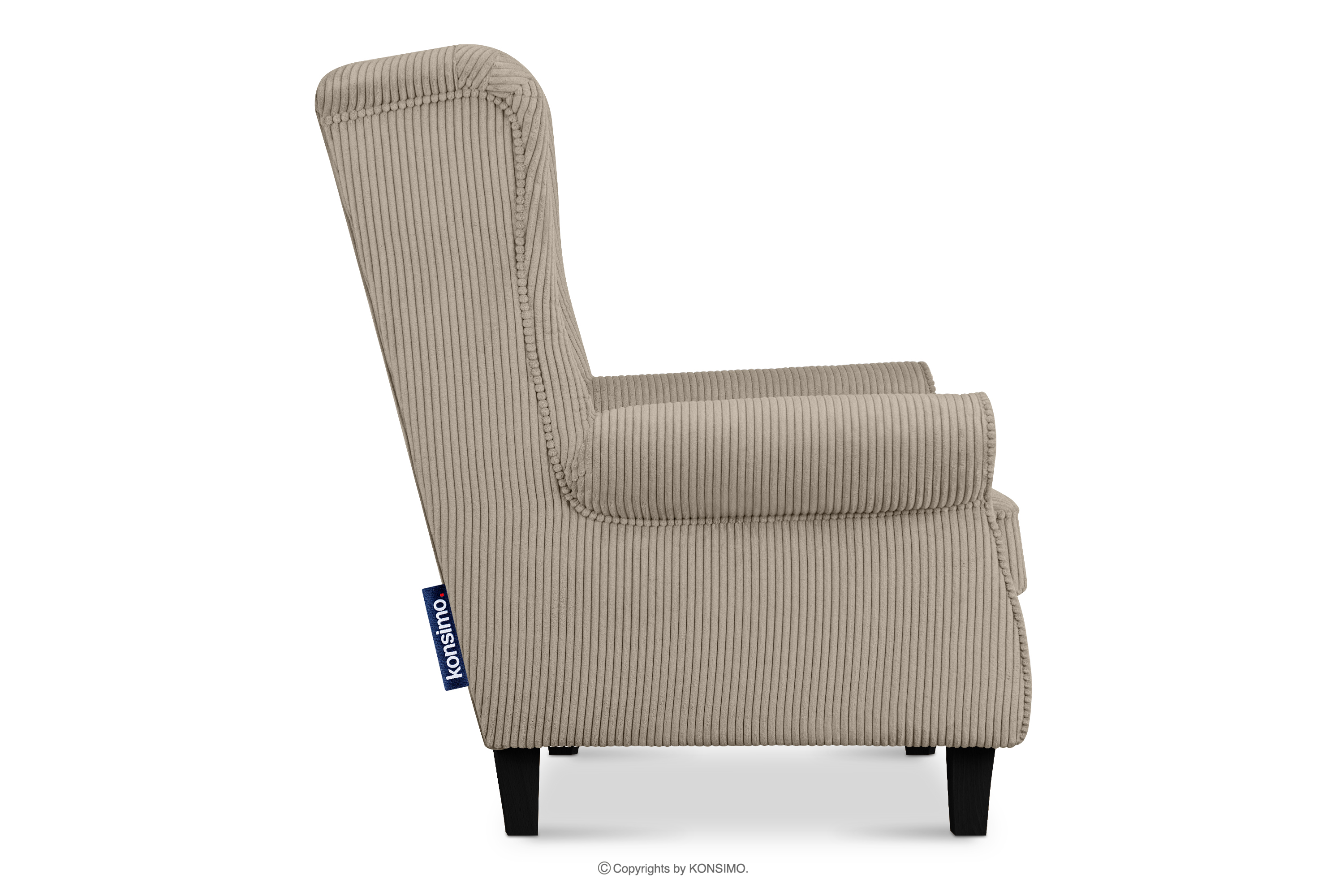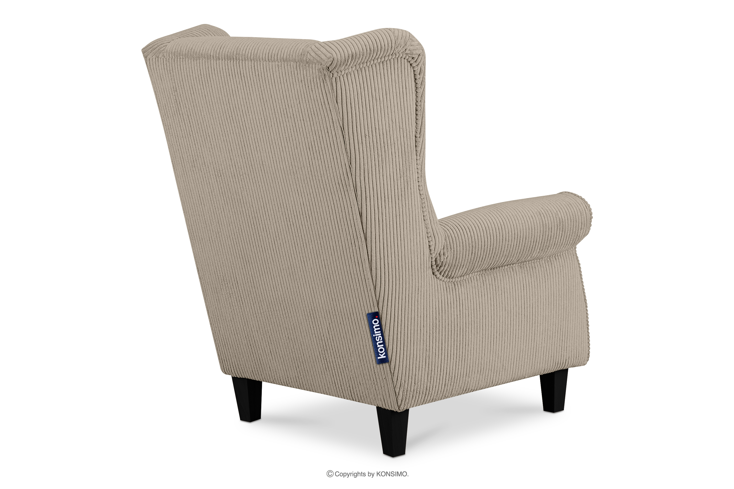 produktu Manšestrové křeslo Ušiak na dřevěných nohách světle béžová/černá