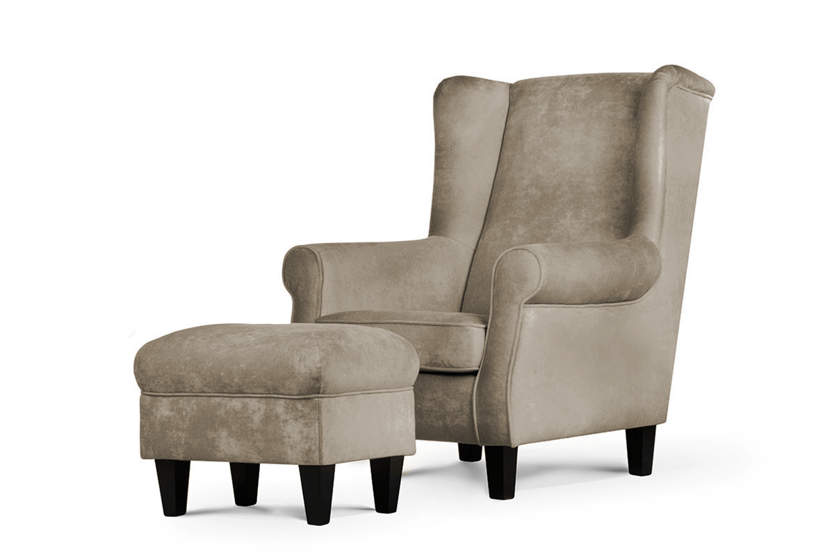 MILES Objav celú kolekciu Béžové kreslo ušiak s čiernymi nôžkami- farba béžový