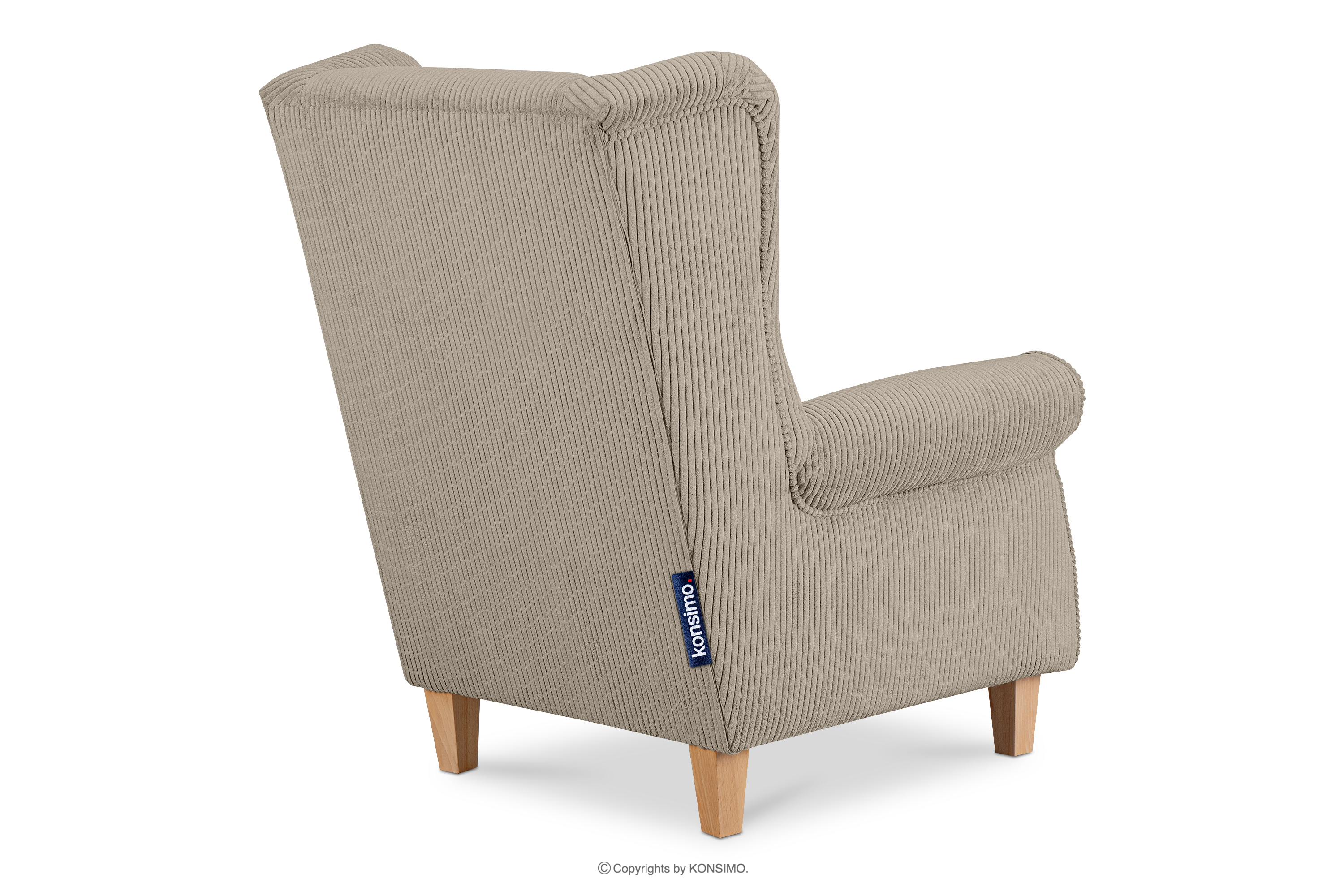 produktu Manšestrové křeslo Ušiak na dřevěných nohách světle béžová/ buk