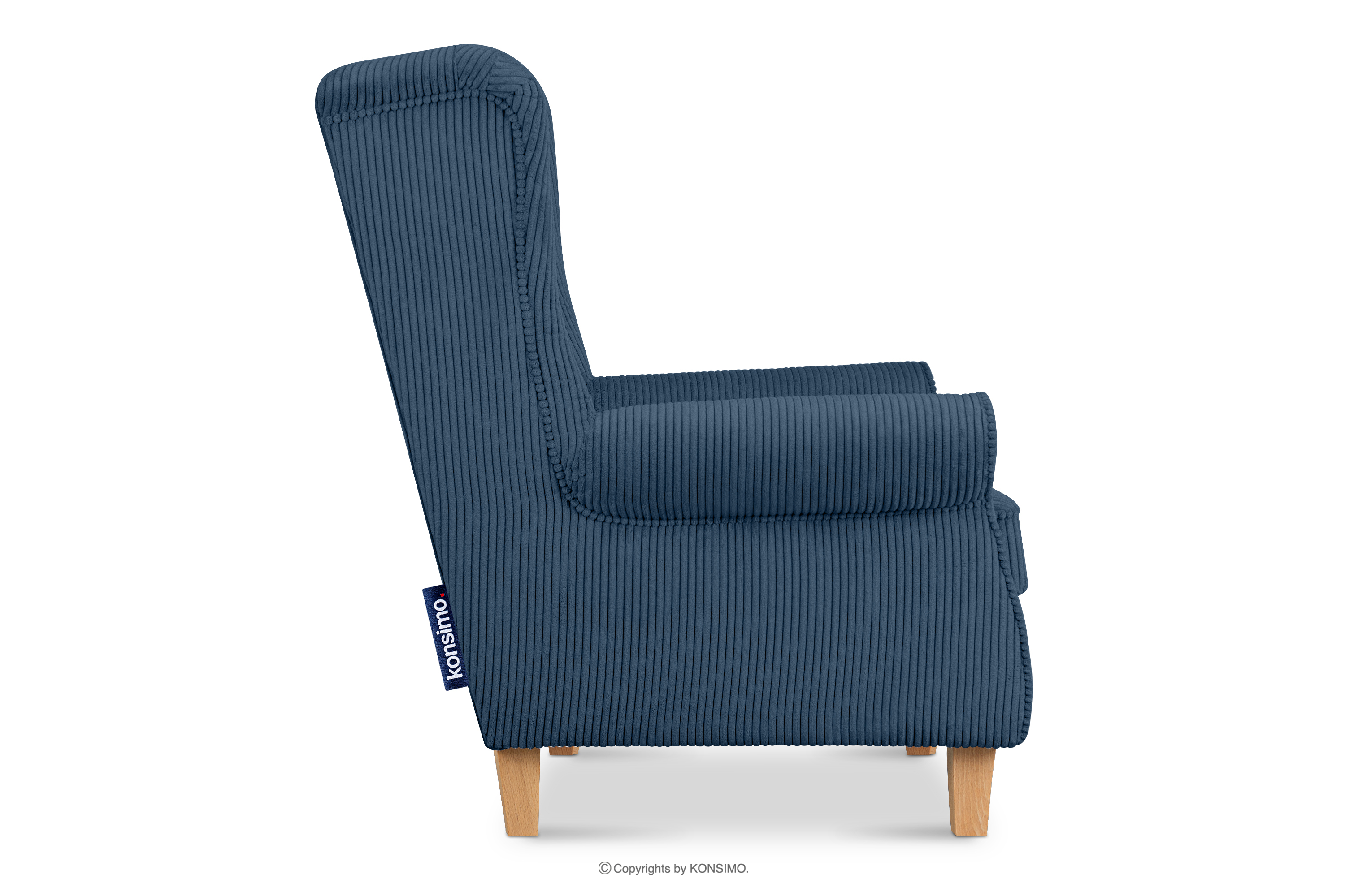 produktu Manšestrové křeslo Ušiak na dřevěných nohách tmavě modré/bukové