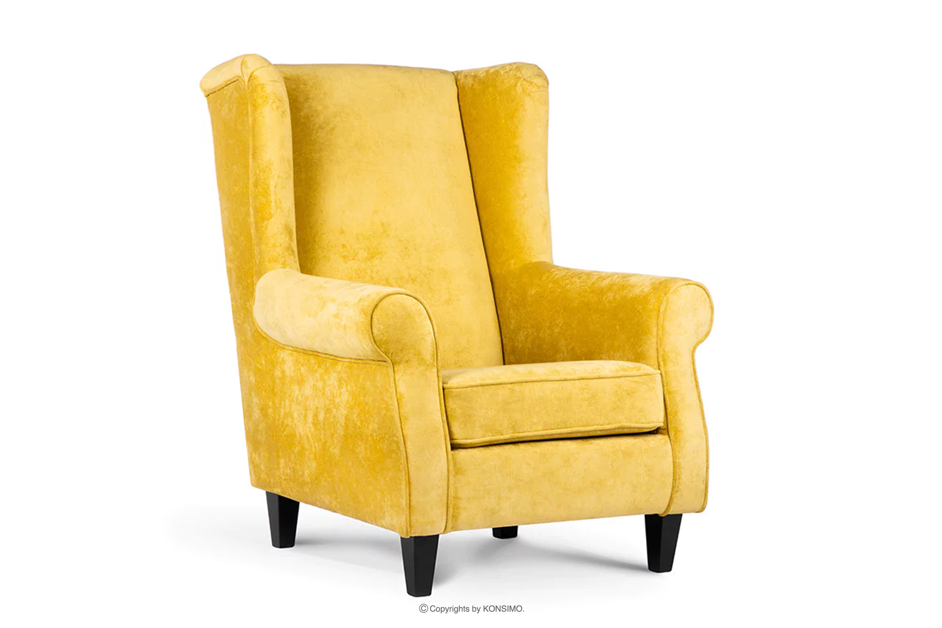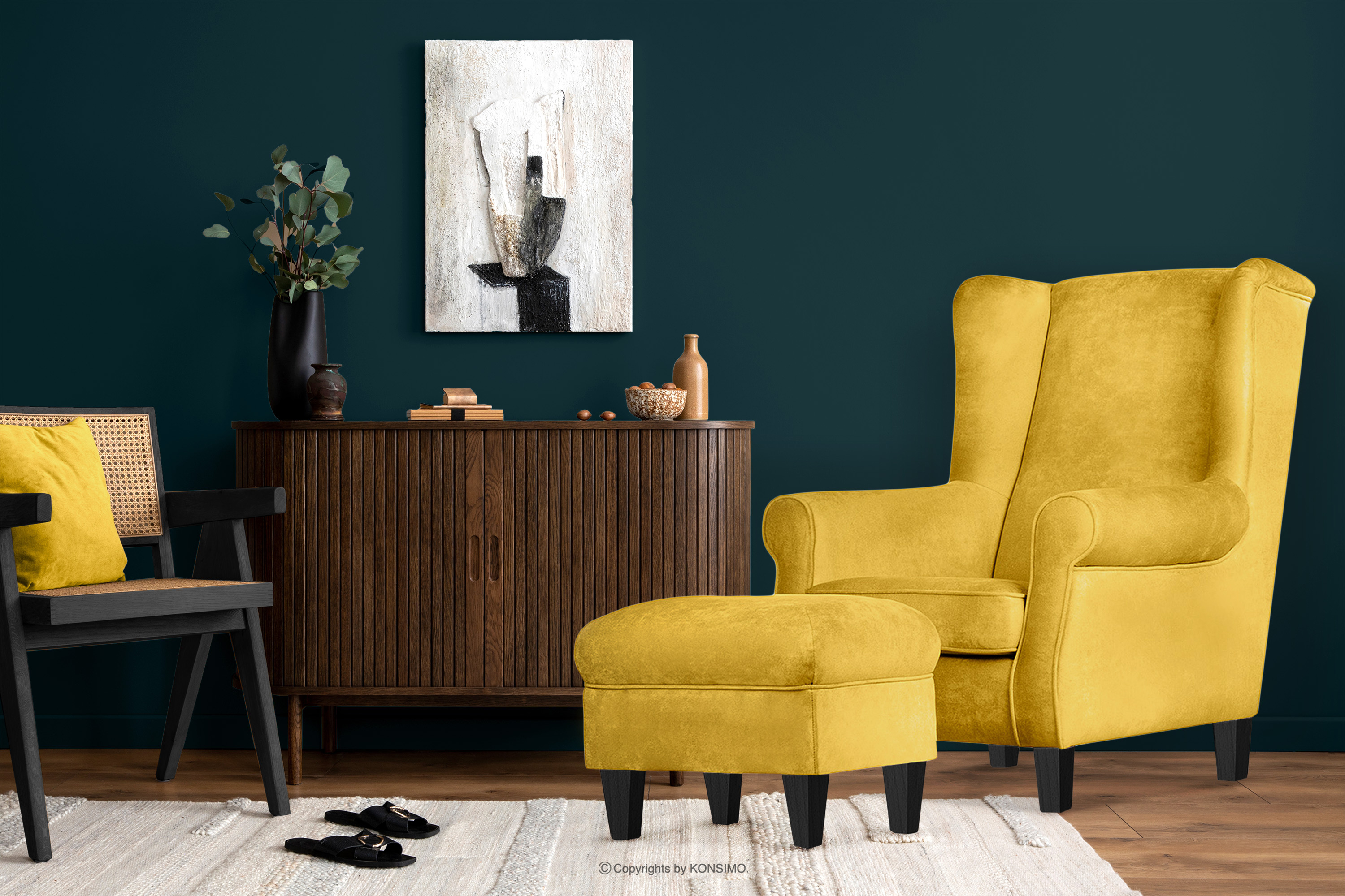 MILES Objav celú kolekciu Súprava kreslo ušák a puf žltá/čierna- farba žltá/čierna