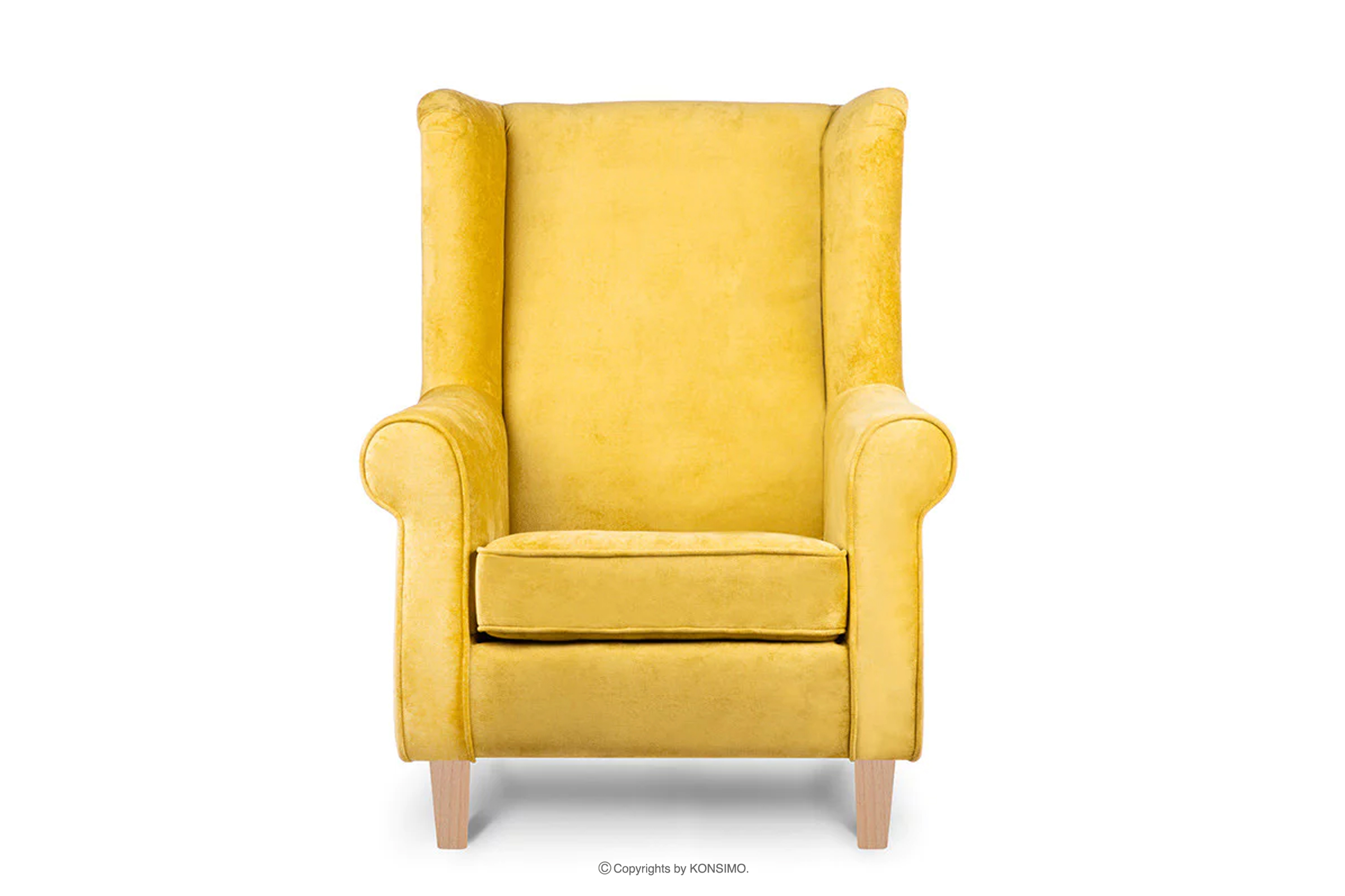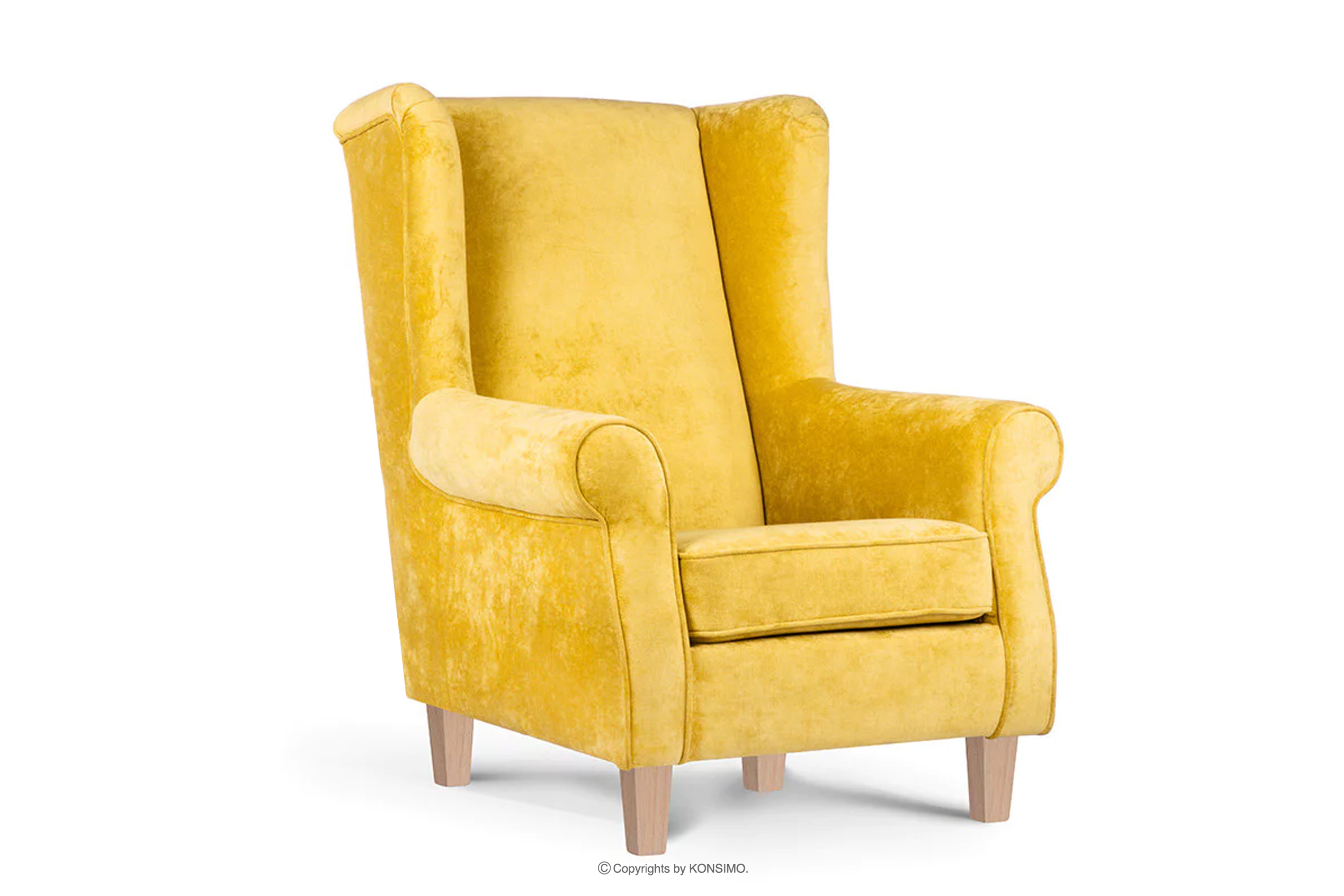 MILES Objav celú kolekciu Súprava kresla ušák a pufu žltá/ buk- farba žltá/ buk