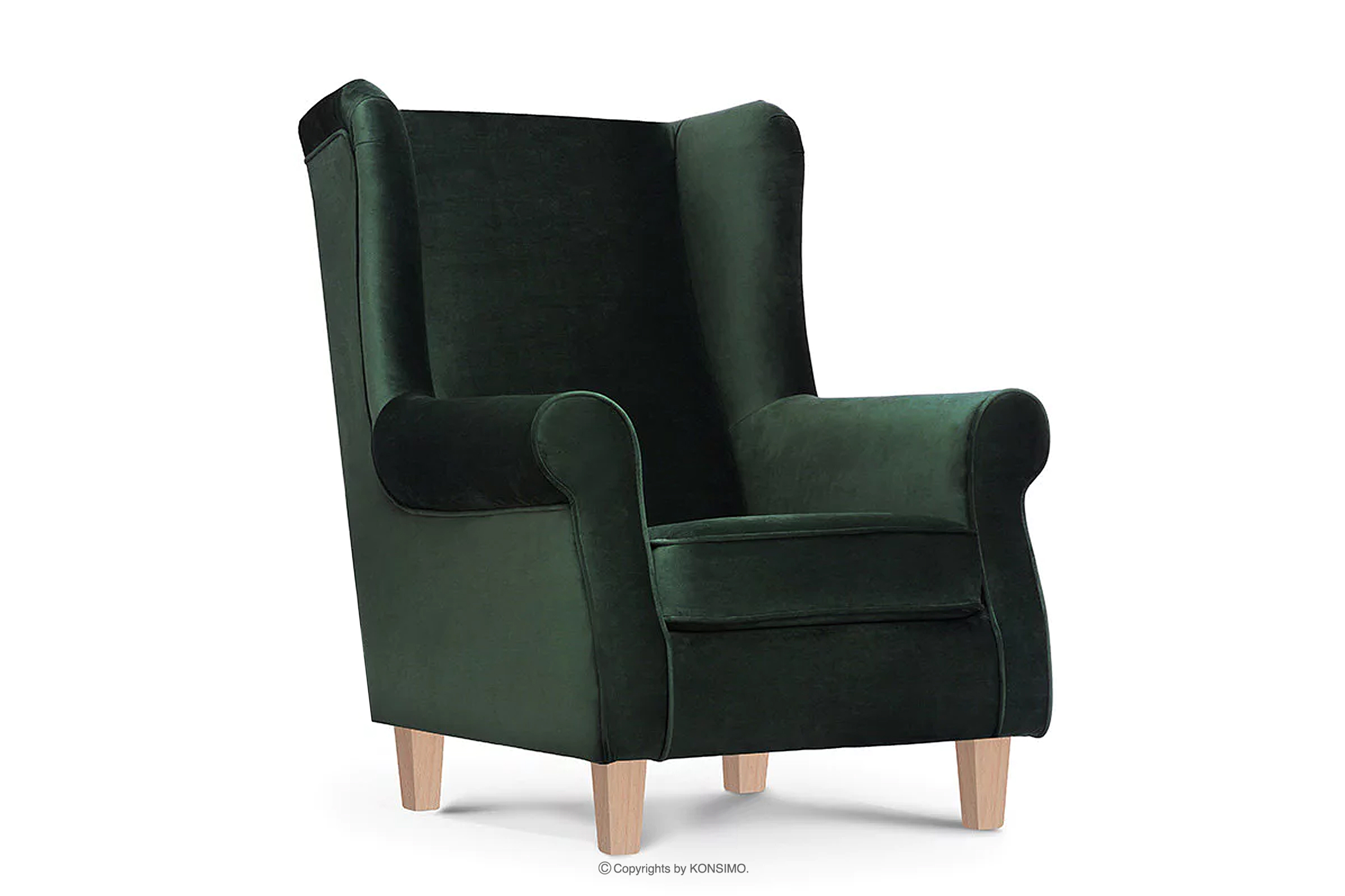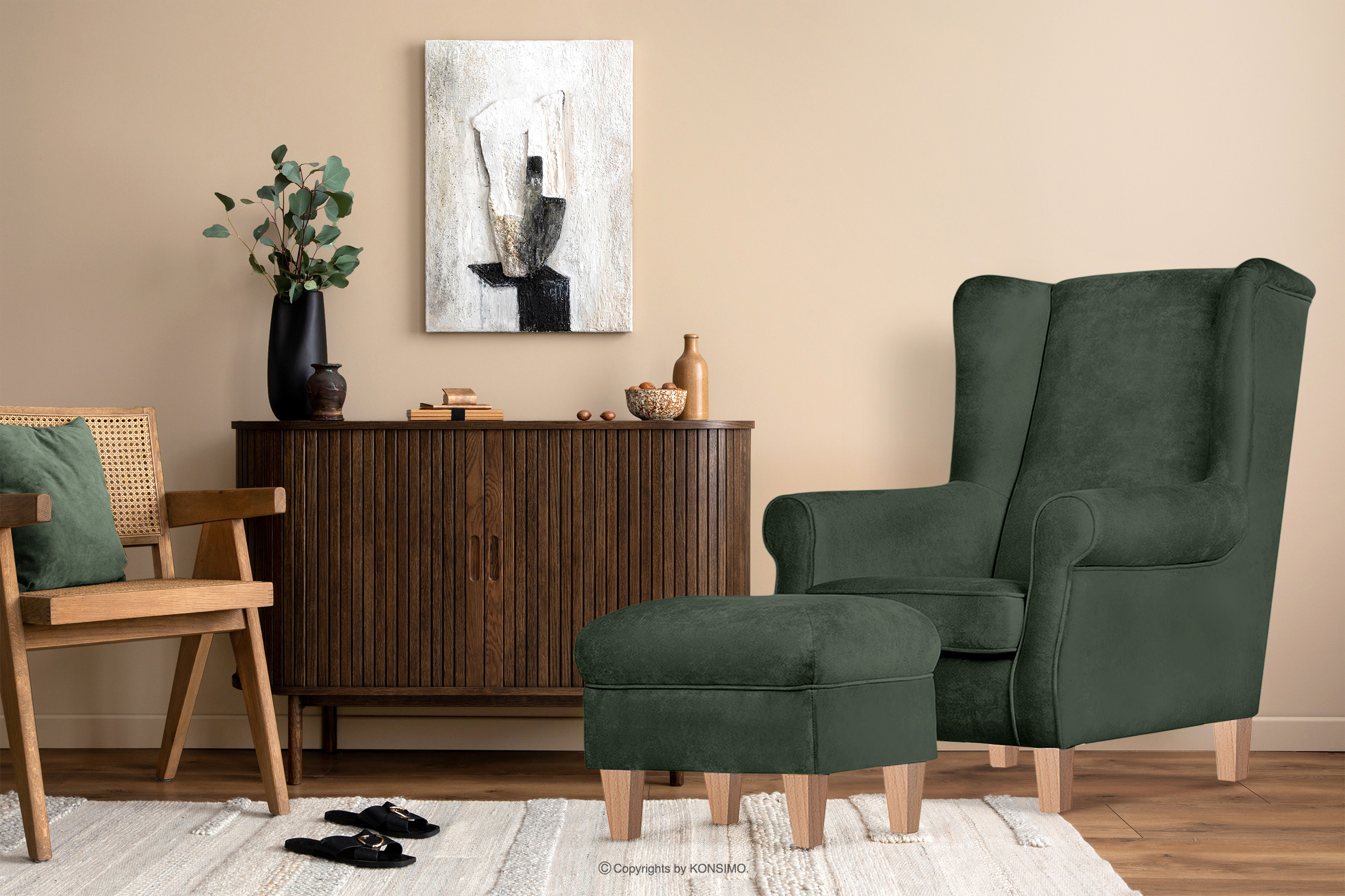 MILES Objav celú kolekciu Súprava kresla a pufu ušák zelená / buk- farba zelená/ buk