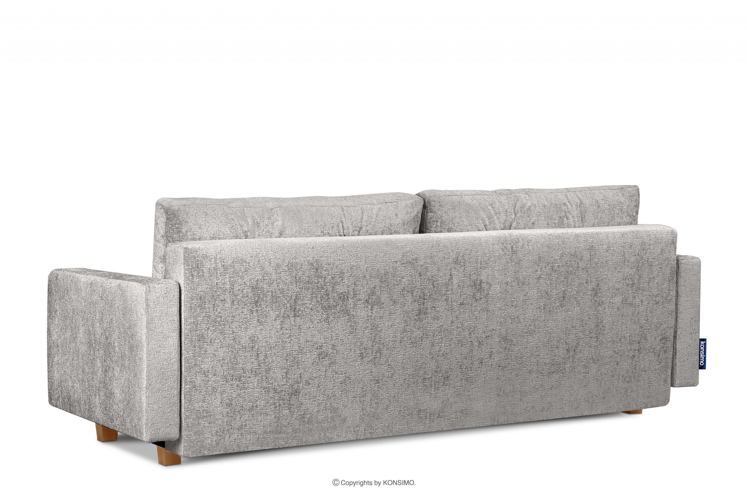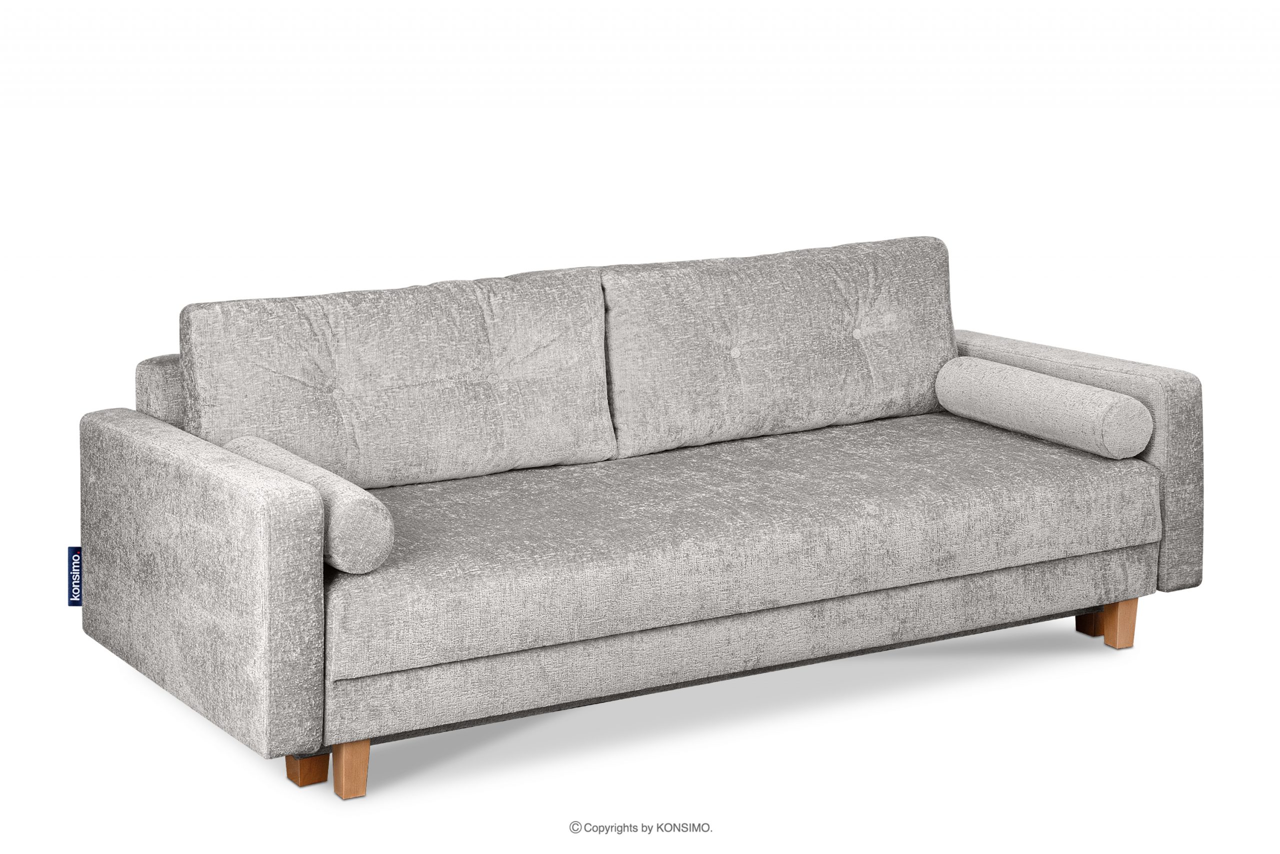 Štýlová pohovka je jedným z najdôležitejších prvkov dobre zariadenej obývačky. Strieborná prešívaná pohovka má funkciu na spanie - výborne sa hodí pre hostí na prenocovanie. Mechanizmus rýchleho a automatického rozkladu naklonením operadla dopredu uľahčuje používanie nábytku. Vnútorný kontajner poskytne potrebný priestor na uloženie posteľnej bielizne. Čalúnenie z kvalitnej tkanej látky pripomínajúcej ženilku sa vyznačuje trvanlivosťou a odolnosťou proti poškodeniu.