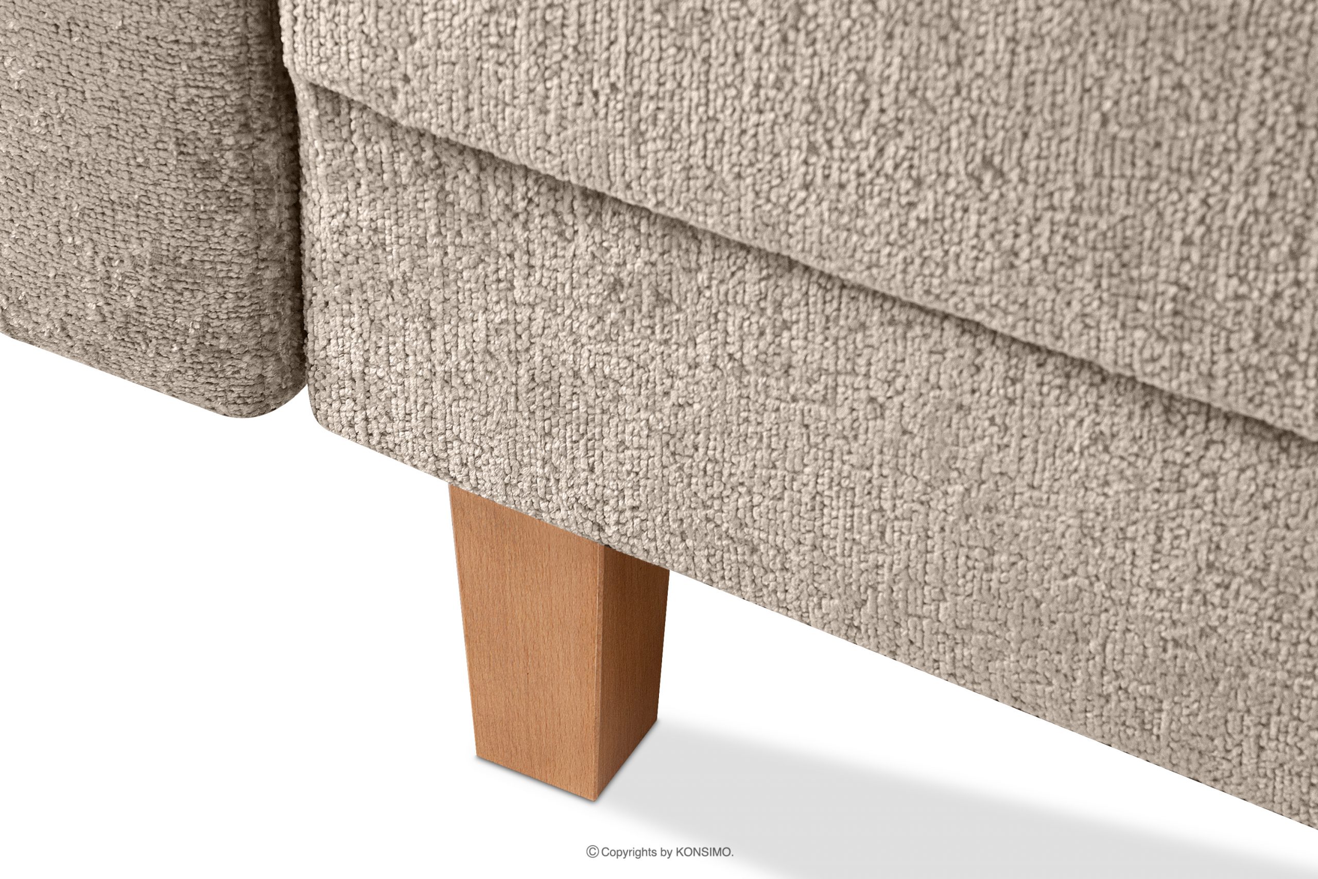 Dva opierkové vankúše a dva dekoračné vankúše zvyšujú pohodlie tejto modernej pohovky. Vďaka zipsom ukrytým v estetických tuneloch sa dajú poťahy ľahko vybrať a rýchlo vyprať. Pohodlie zabezpečuje stredne tvrdý sedák z bonellovej pružiny, oválnej a polyuretánovej peny. Dokonale zapadne do minimalistického interiéru obývacej izby. Drevené nožičky a materiál najvyššej kvality dodávajú pohovke ERISO eleganciu a podčiarkujú jej škandinávsky štýl. Celá konštrukcia je stabilná a nábytok je odolný, takže by mal dlho vydržať.