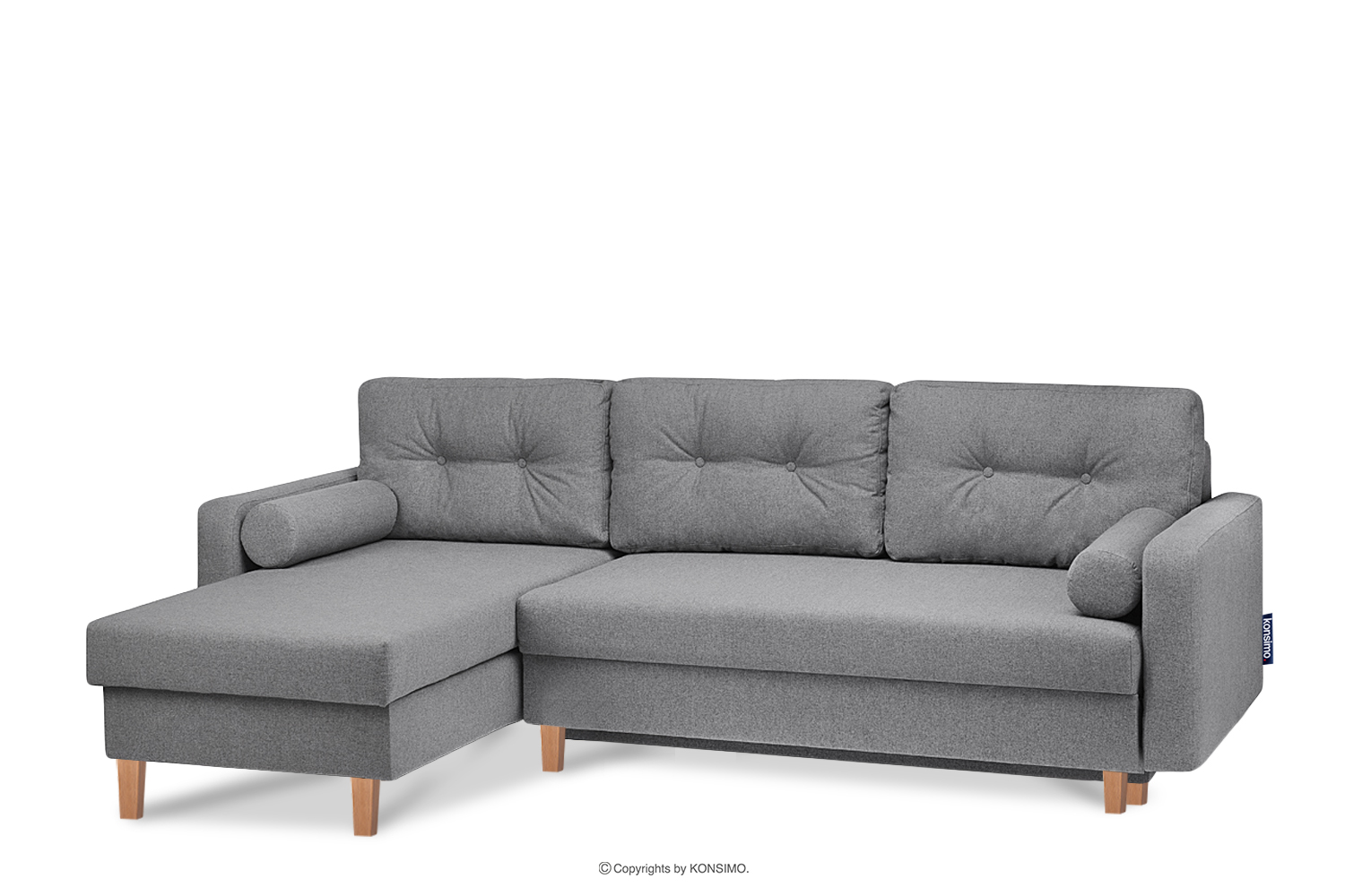 Tmavosivá rohová pohovka do obývačky v škandinávskom štýle je vyrobená z kvalitných materiálov, má pevnú a stabilnú konštrukciu a poskytne členom domácnosti a hosťom pohodlný odpočinok. Pohodlne sa rozkladá vďaka automatickému mechanizmu DL a poskytuje priestor na spanie - ideálne riešenie nielen pre hostí. Je ideálna aj do malých bytov, kde možno pohovku využiť ako posteľ.
