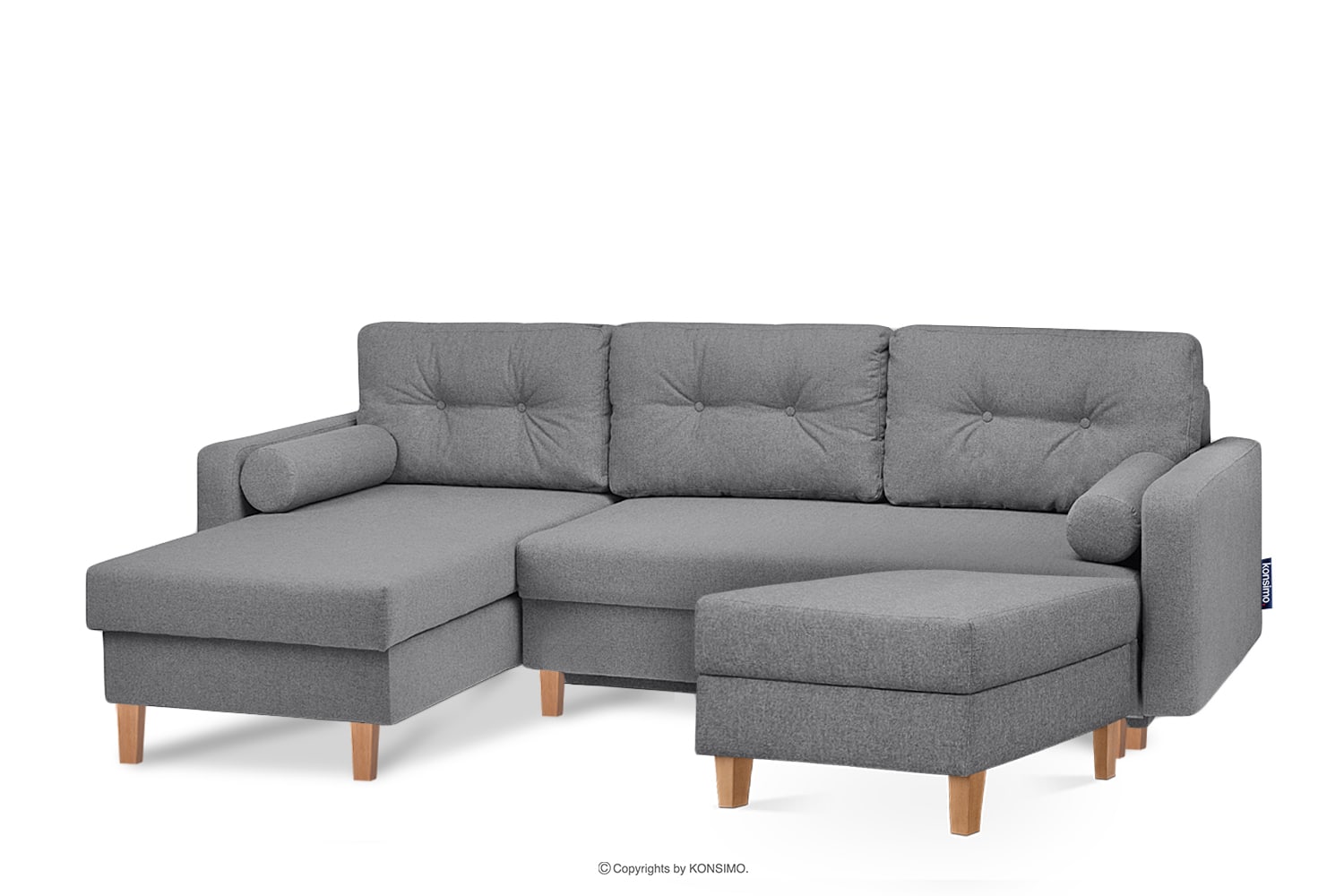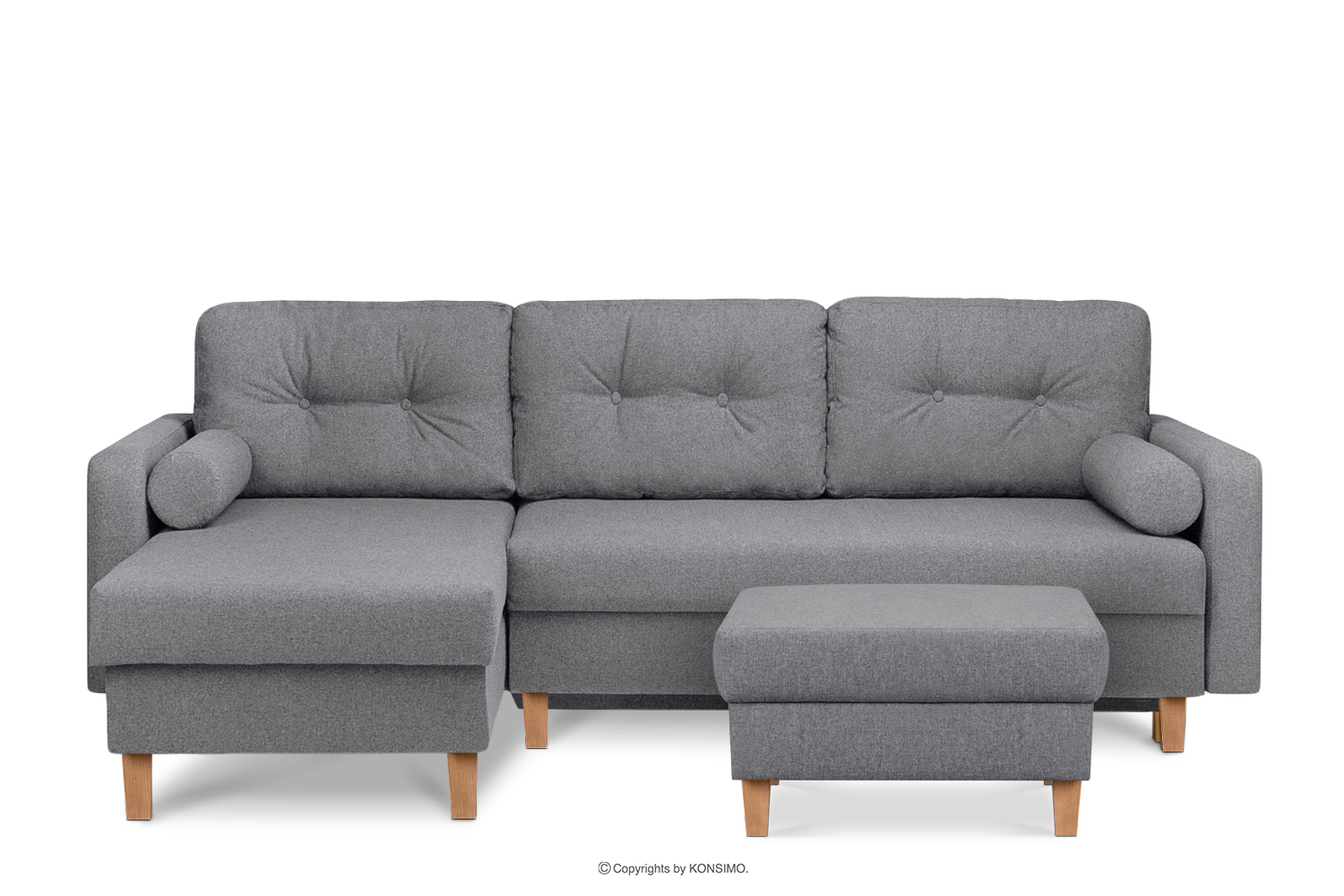 Trendy škandinávsky nábytok si získal uznanie vďaka svojej jednoduchosti a prirodzenosti. Škandinávska rohová pohovka s otomanom má nohy z masívneho dreva, ktoré podčiarkujú tento originálny štýl. Absencia zbytočných dekorácií, jednotnosť a mäkkosť materiálov - to všetko spôsobuje, že členovia domácnosti a hostia sa v interiéri zariadenom touto minimalistickou pohovkou z kolekcie ERISO cítia dokonale. Hodí sa do každého interiéru a dokonale sa kombinuje s rôznymi doplnkami, aj s tými odvážnejšími. Prešitie na operadle zabraňuje rozťahovaniu látky. Okrem toho ide o univerzálnu rohovú pohovku, čo znamená, že v prípade potreby môžeme zmeniť jej stranu.