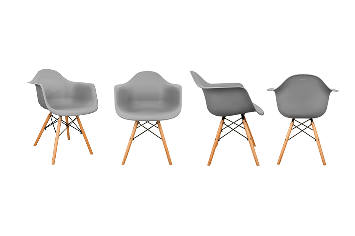 NEREA Objav celú kolekciu 4 šedé škandinávske stoličky s lakťovými opierkami- farba šedá