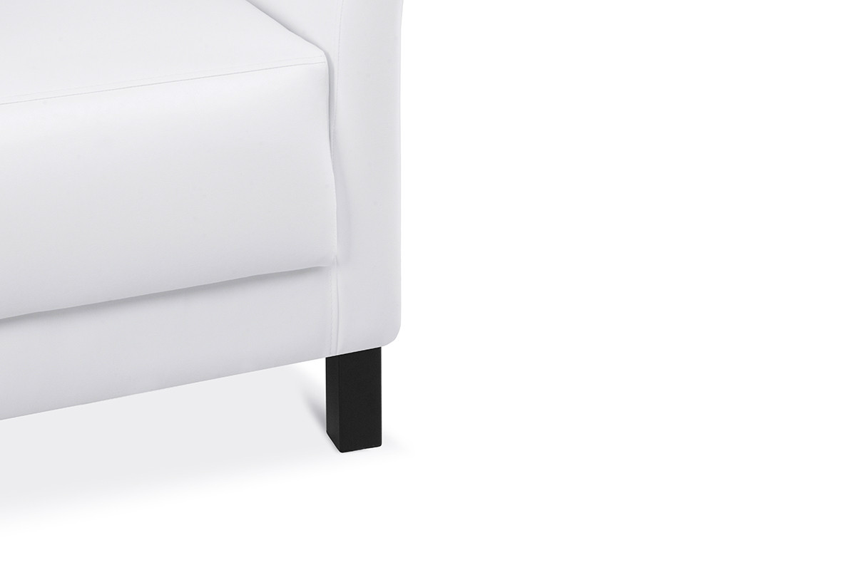 Krásna a pohodlná biela pohovka ESPECTO - existuje podobný výrobok, ktorý zaručuje vysoký komfort, je skvelou dekoráciou a vydrží roky v perfektnom stave? Vysokokvalitné materiály, ako je ekologická koža alebo spracovanie nôh a rámu. Dodatočné pohodlie poskytuje aj stredne tvrdý sedák. Pohovka má čierne nožičky, ktoré jej dodávajú ľahkosť, ktorá určite osloví priaznivcov moderného a jednoduchého štýlu. Je vhodná nielen do domácnosti, ale aj do štýlových čakární, kancelárií, kozmetických salónov alebo kaviarní, kde môžu zákazníci pohodlne stáť v rade .