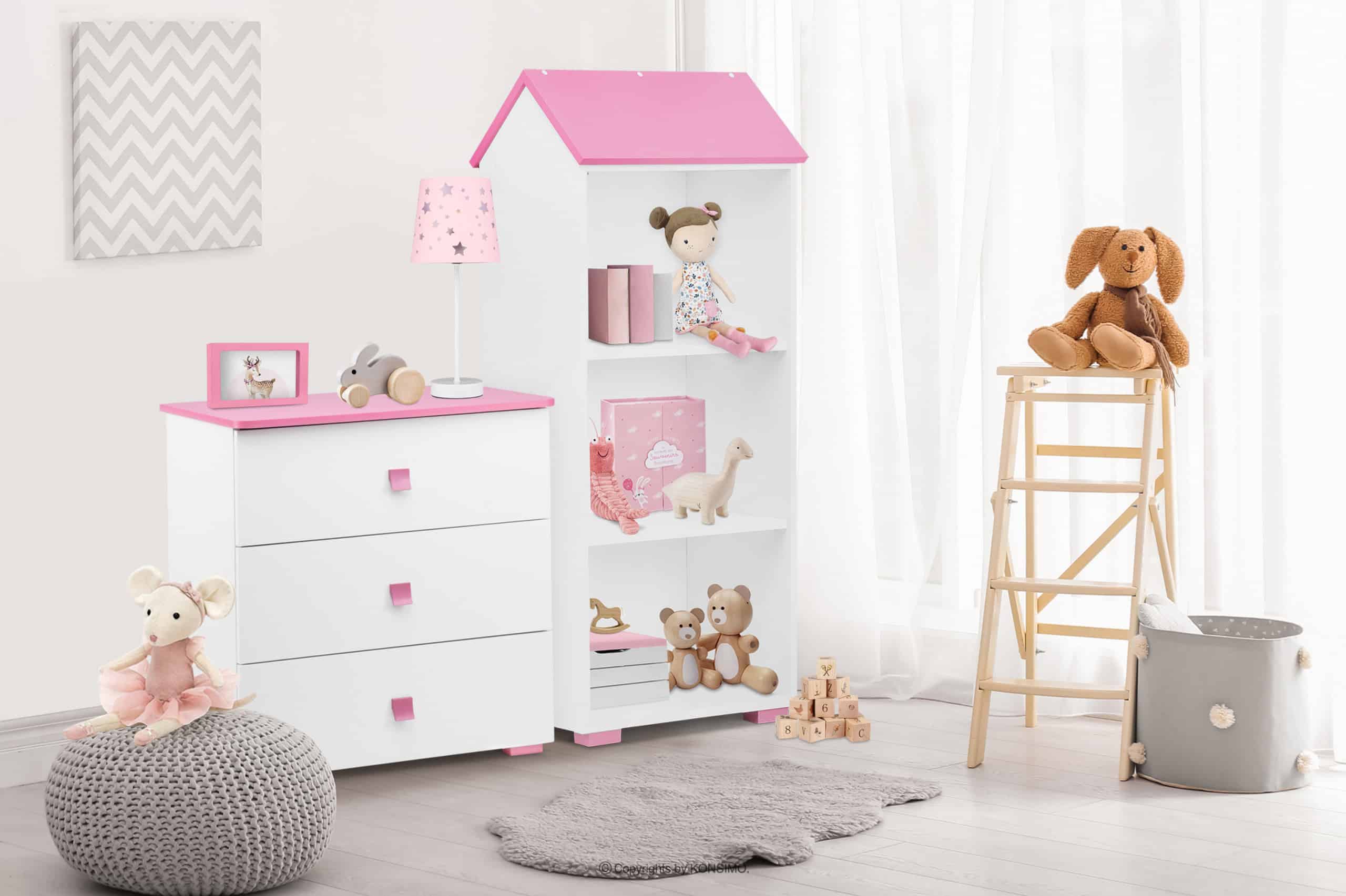 Detská knižnica z kolekcie PABIS, navrhnutá s ohľadom na potreby tých najmenších, spĺňa vysoké bezpečnostné požiadavky. Vďaka použitiu hrubého plechu a dodatočnému vystuženiu zadnej steny si zachováva stabilitu za všetkých okolností. ABS hrany a skosené hrany zaručujú ochranu pred zranením pri nečakanom kontakte s nábytkom. Biela knižnica PABIS so strieškou je vybavená tromi pohodlnými policami - zmestia sa do nich knihy, hračky a ďalšie prvky vybavenia detskej izby.