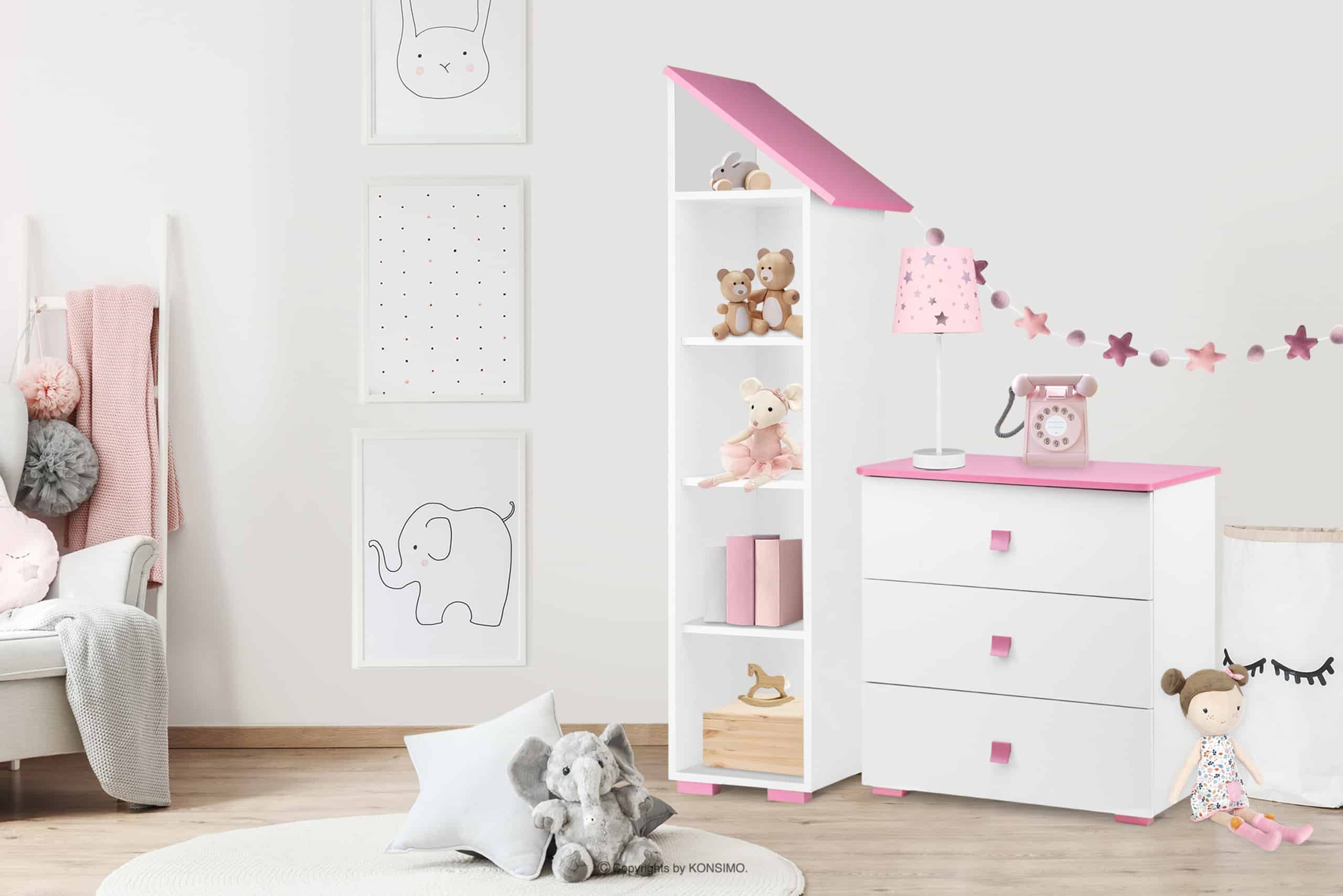 Nábytok do domu je očarujúcim a praktickým riešením, ktoré deti milujú. Biela detská knihovnička s farebnou strieškou plná praktických poličiek pojme množstvo knižiek, hračiek, suvenírov a všetkých ďalších drobností pre predškoláka a študenta. Vďaka použitiu silnej dosky a špeciálnemu upevneniu zadnej steny je táto polica mimoriadne stabilná a bezpečná. Knižnica pre deti PABIS je tiež bezpečná - využíva ABS hrany a zrážanie hrán.