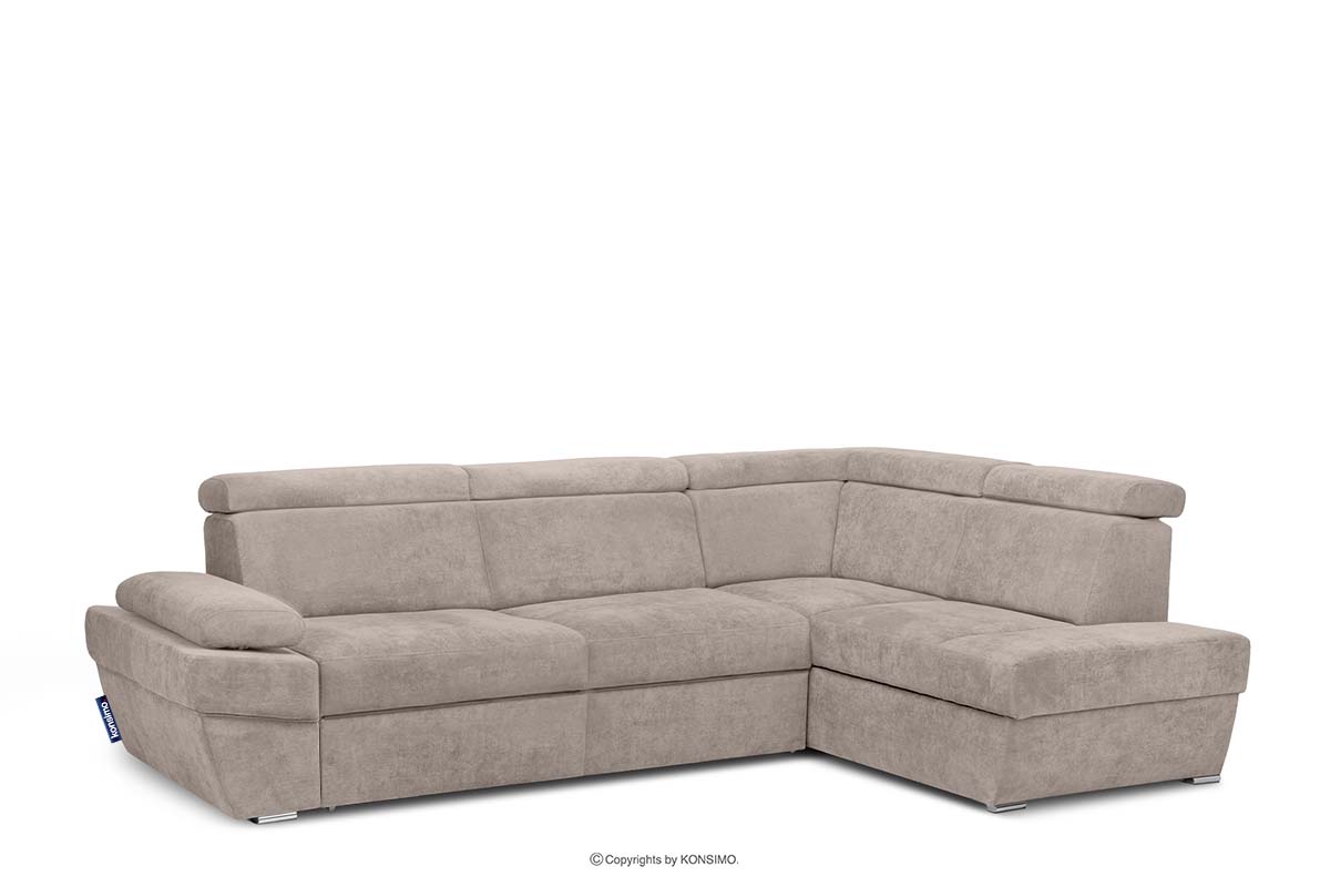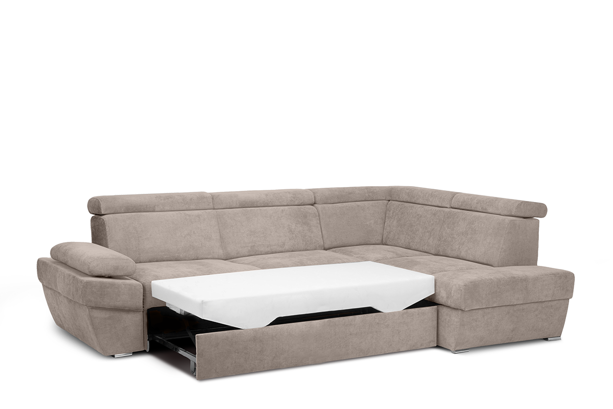 Odolná, ľahko čistiteľná, vyrobená z pevných a odolných materiálov, pravá rohová rozkladacia pohovka s kontajnerom na lôžkoviny v béžovej farbe z modernej kolekcie nábytku RATLO je dizajnom pre náročných zákazníkov. Ľahko sa rozkladá a vďaka veľkému boxu je ideálna do malých bytov. Látky sú príjemné na dotyk a mimoriadne odolné voči oderu a poškodeniu.