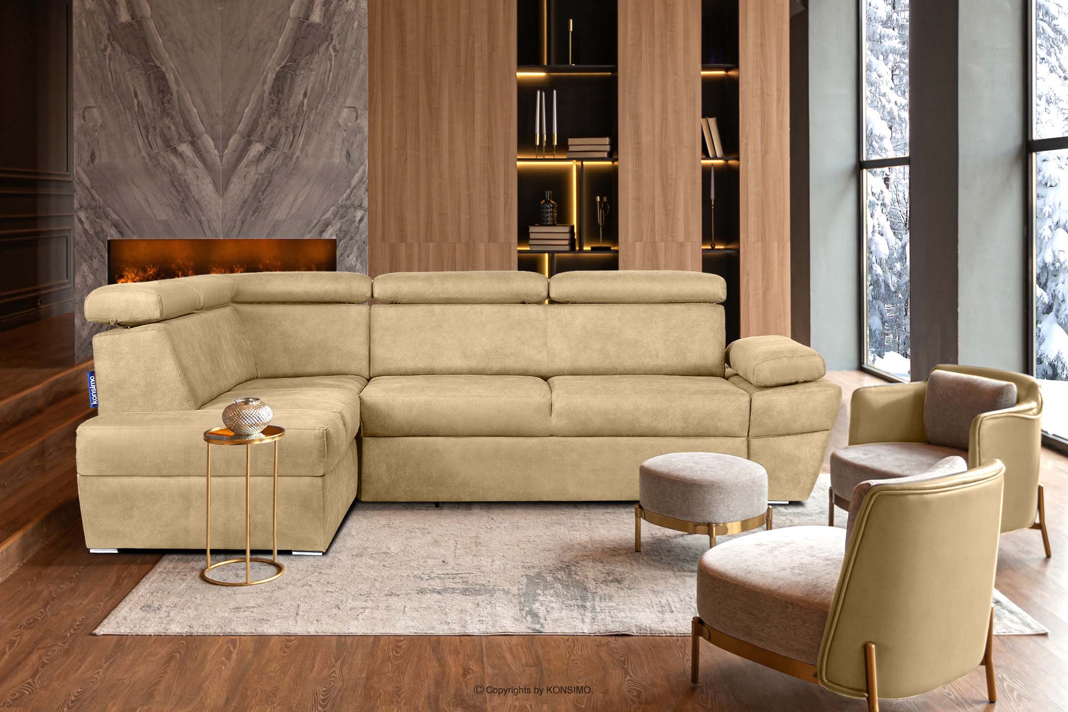produktu Rohová pohovka s funkciou spania z látky podobnej koži piesková vľavo