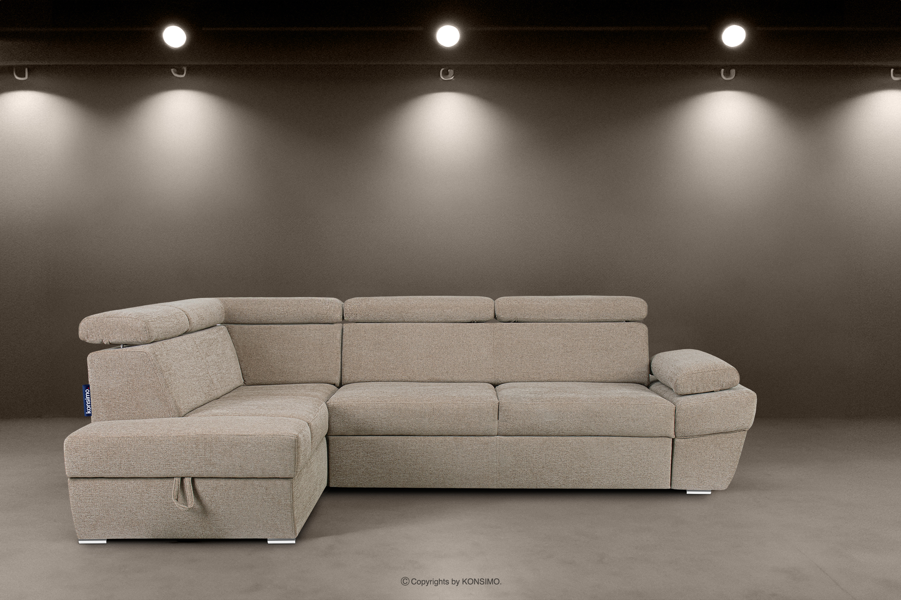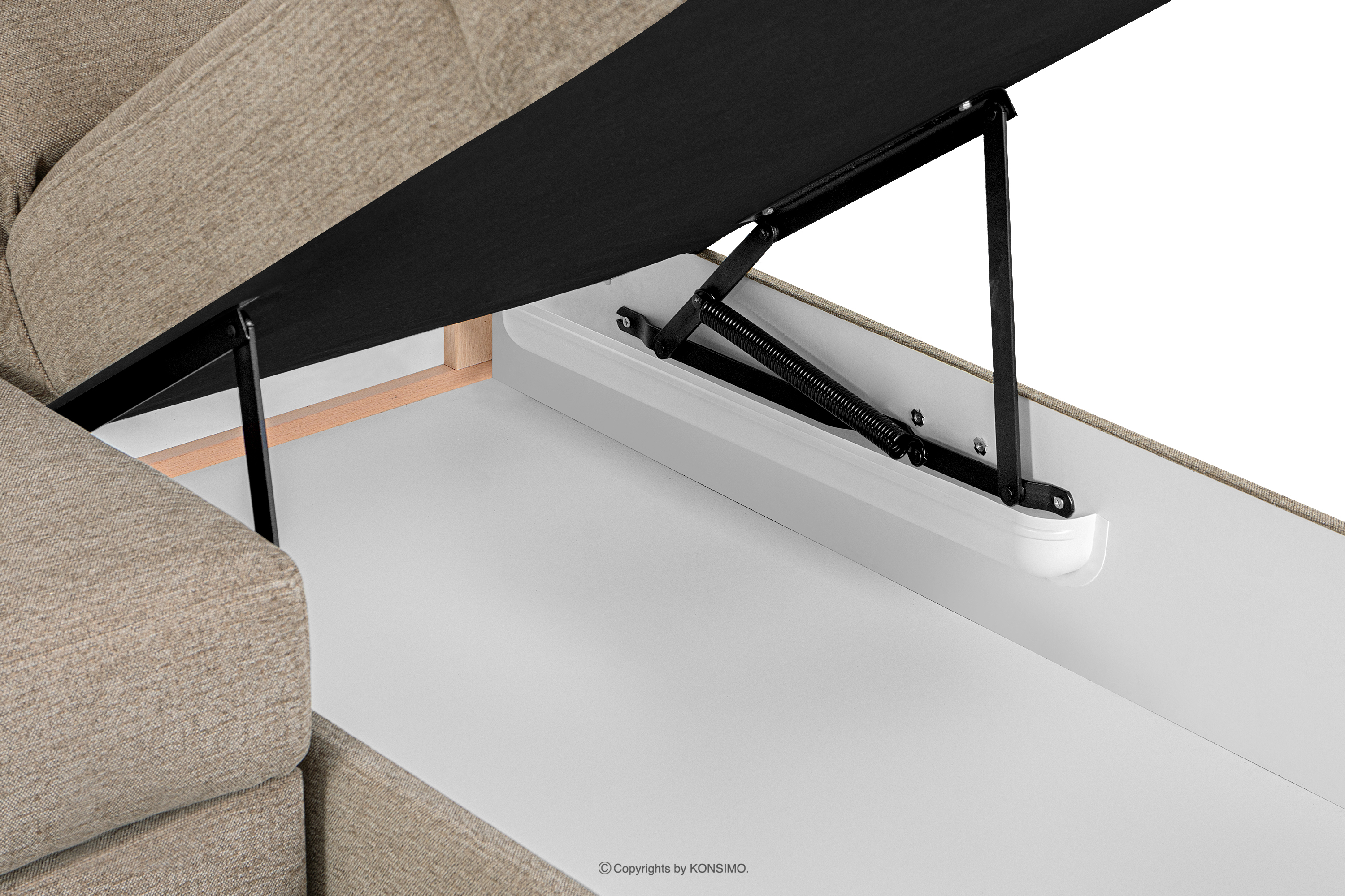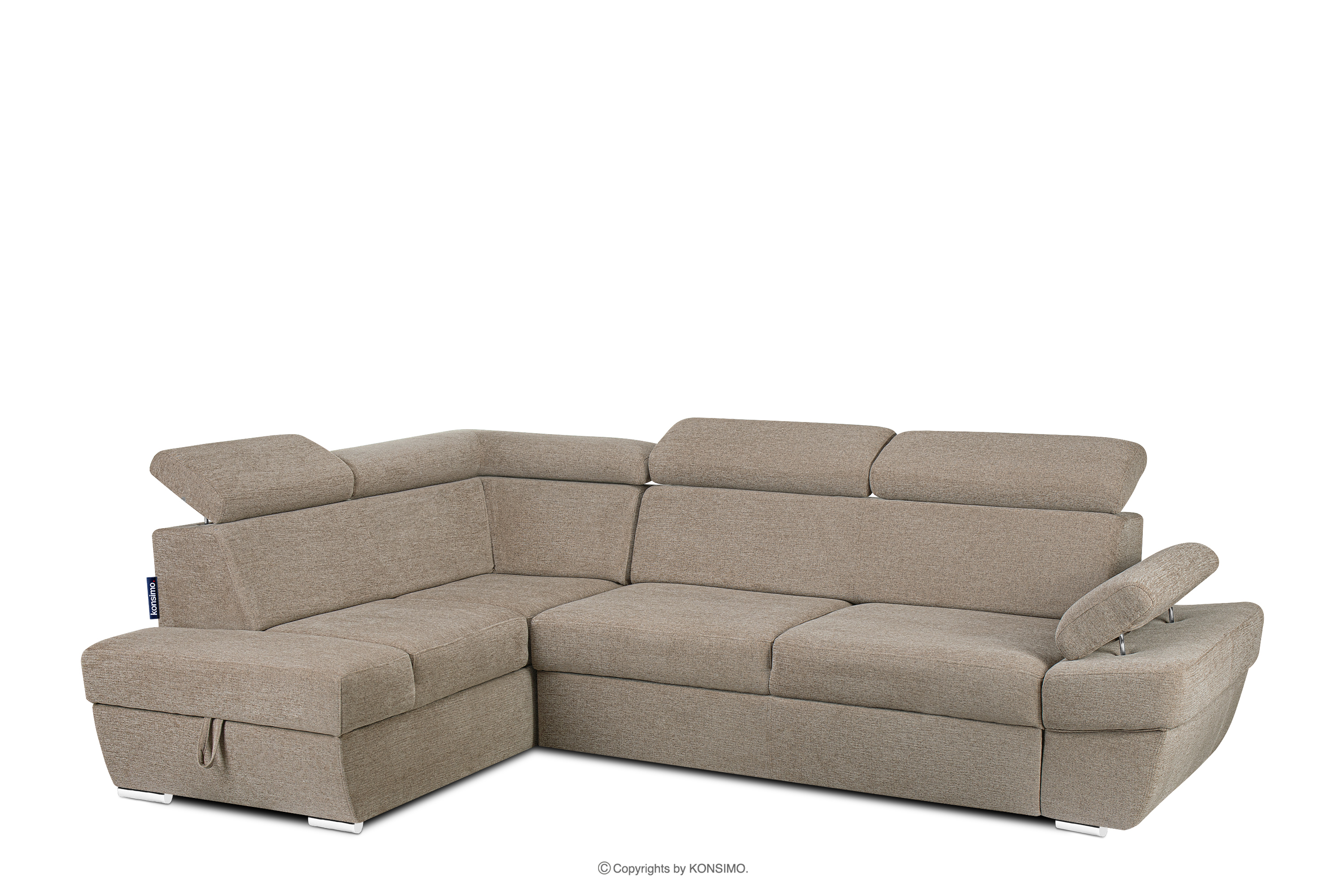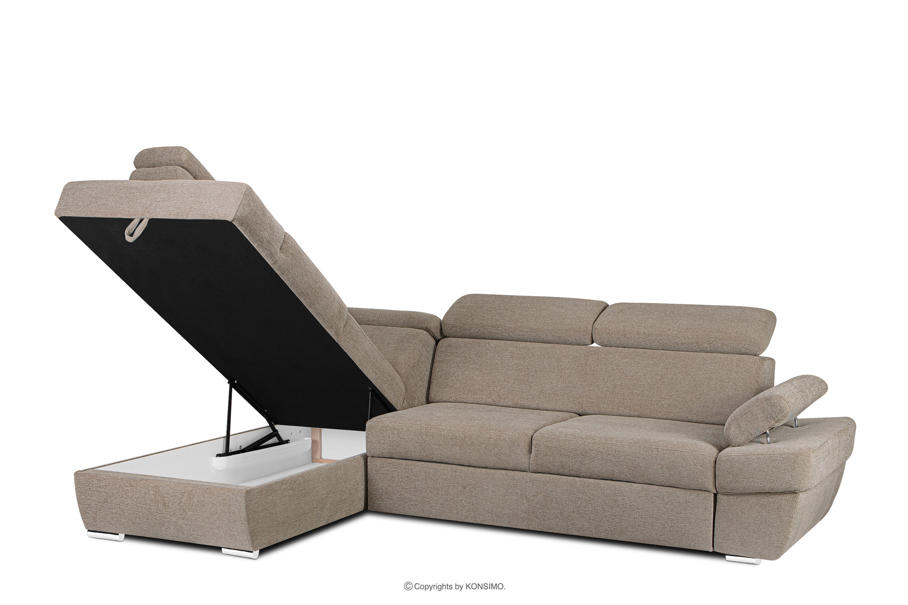 RATLO Rohová pohovka s funkciou spania a kontajnerom na posteľnú bielizeň tmavobéžová vľavo
